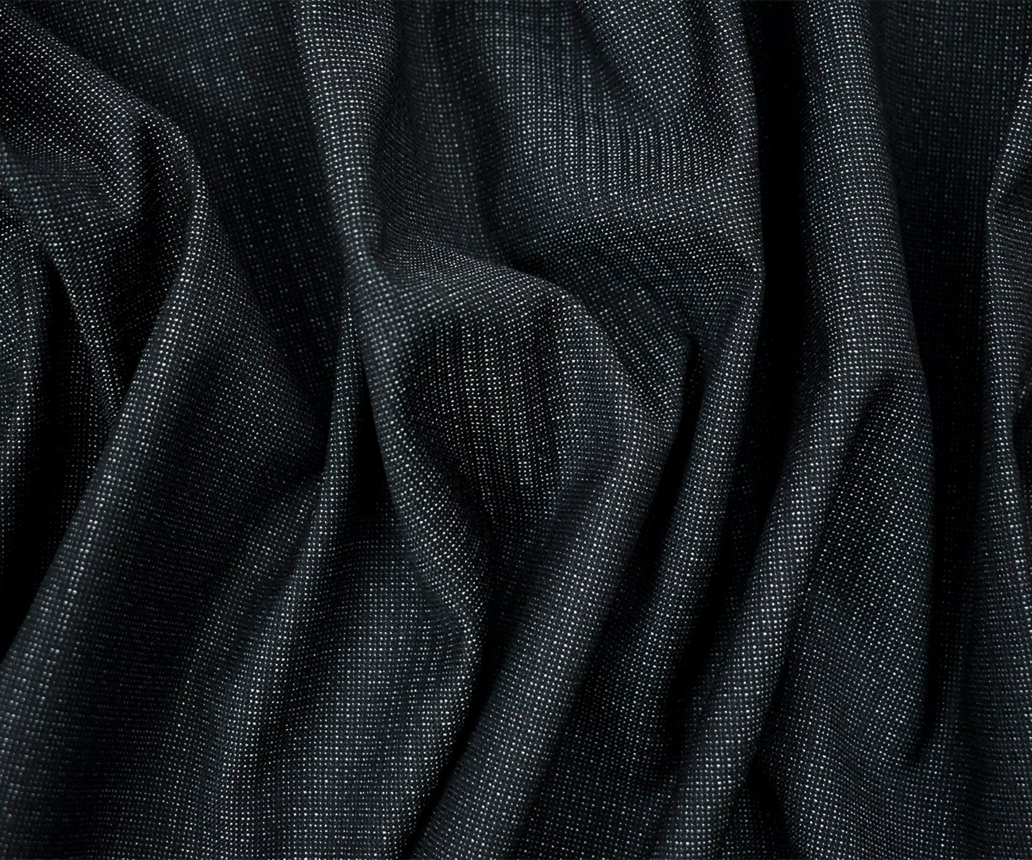 Black-Gray Poly-Wool Plaid Woven Shirting Fabric