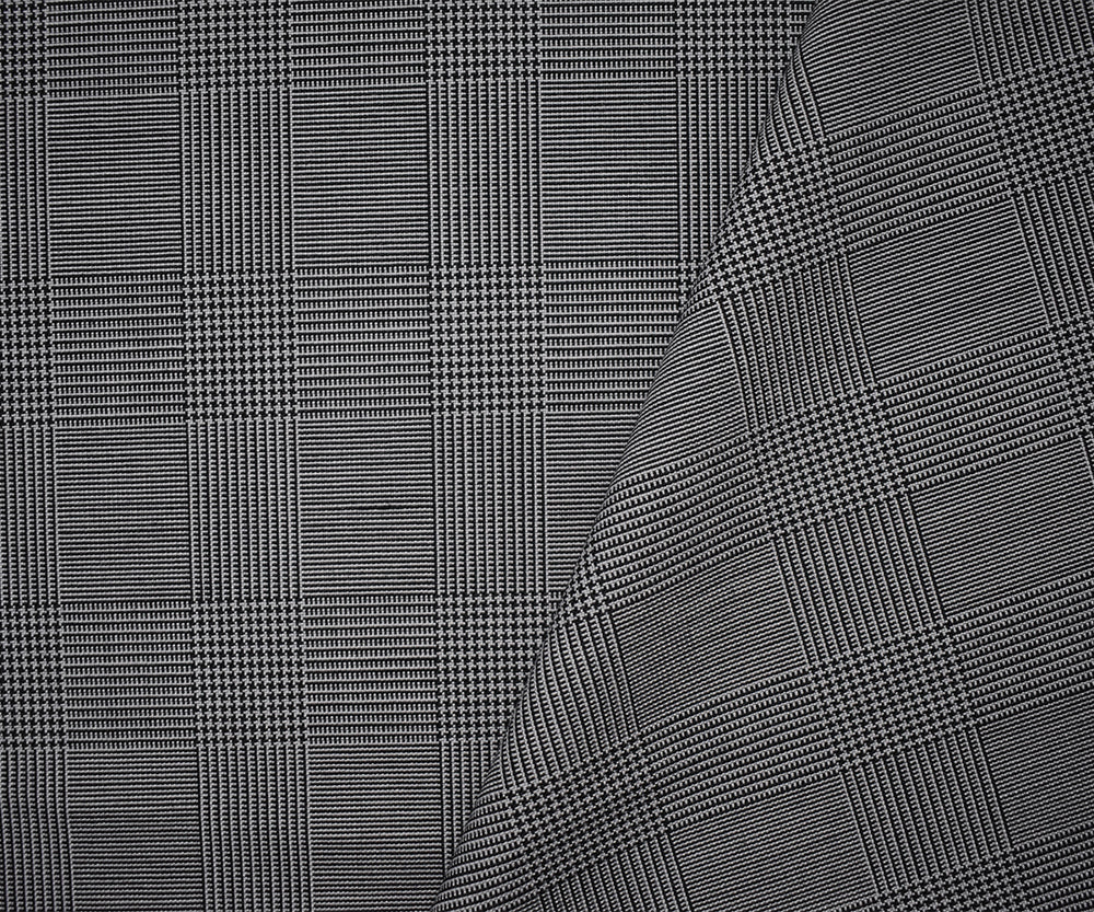 Black-Gray Wool-Poly Japanese Glen Plaid Woven Suiting Fabric