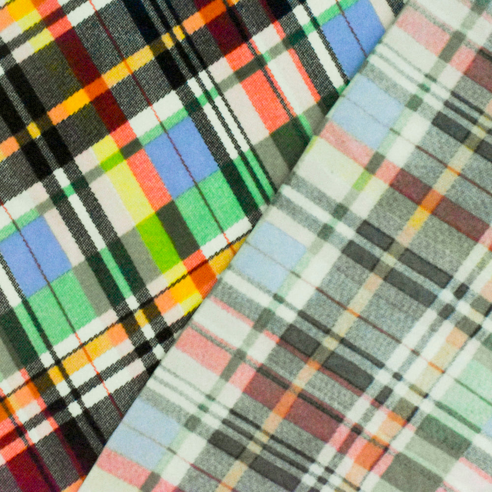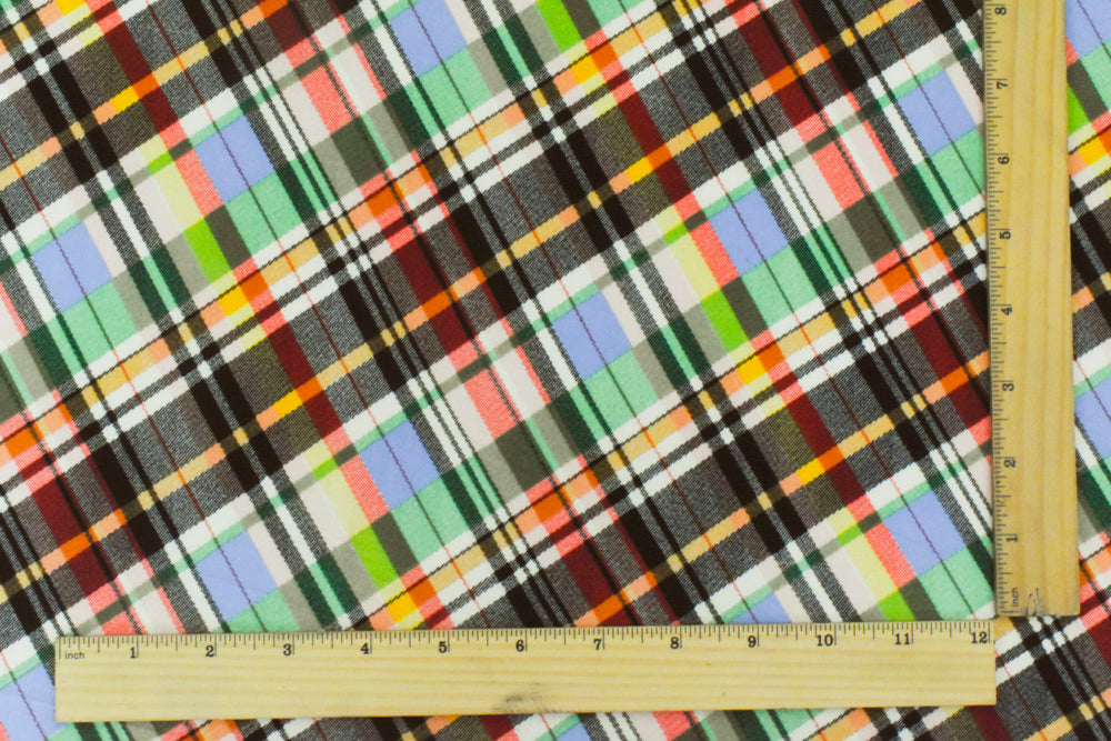 Black-Green-Muti Plaid Printed Stretch Polyspan Jersey Knit Fabric