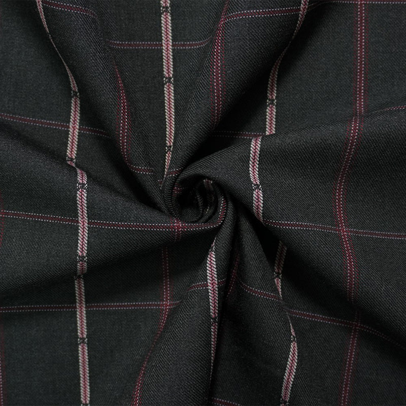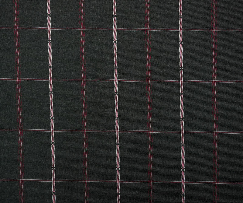 Black-Red-Multi Poly Wool Plaid-Check Twill Woven Suiting Fabric