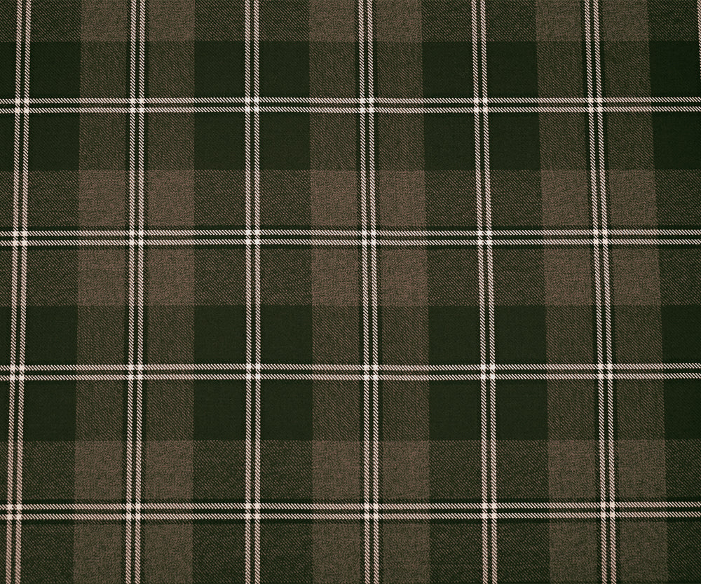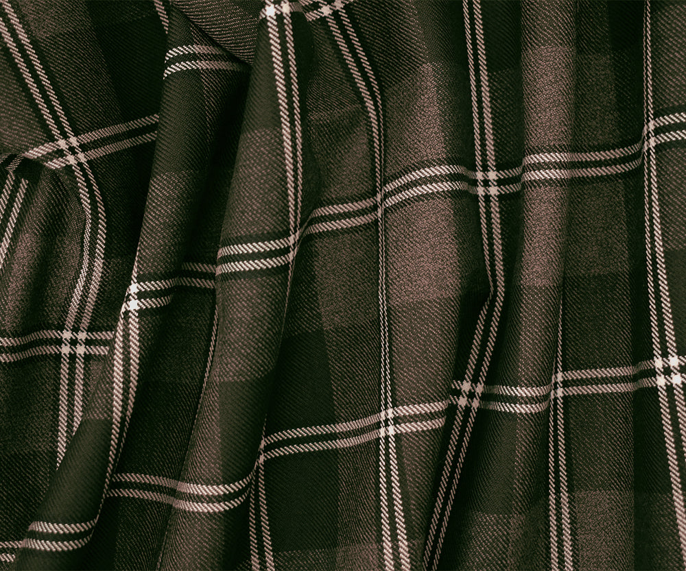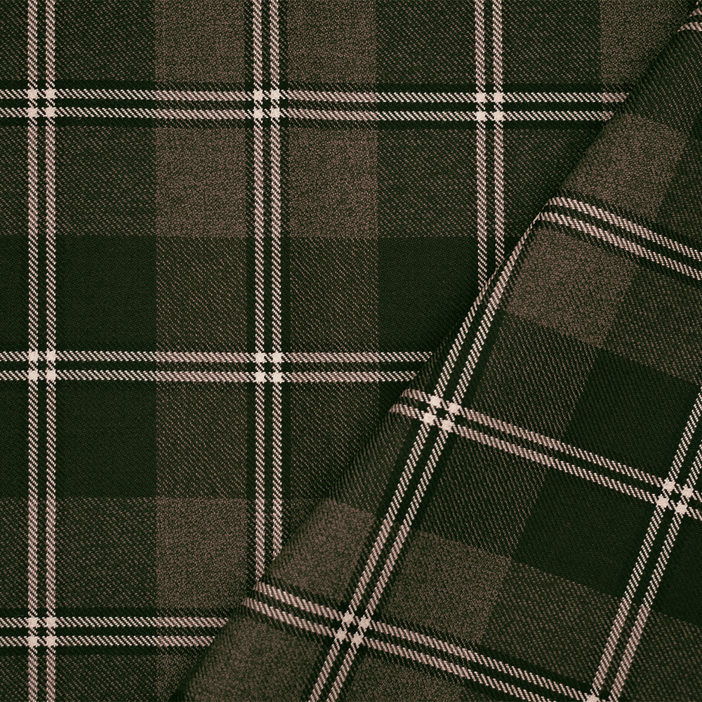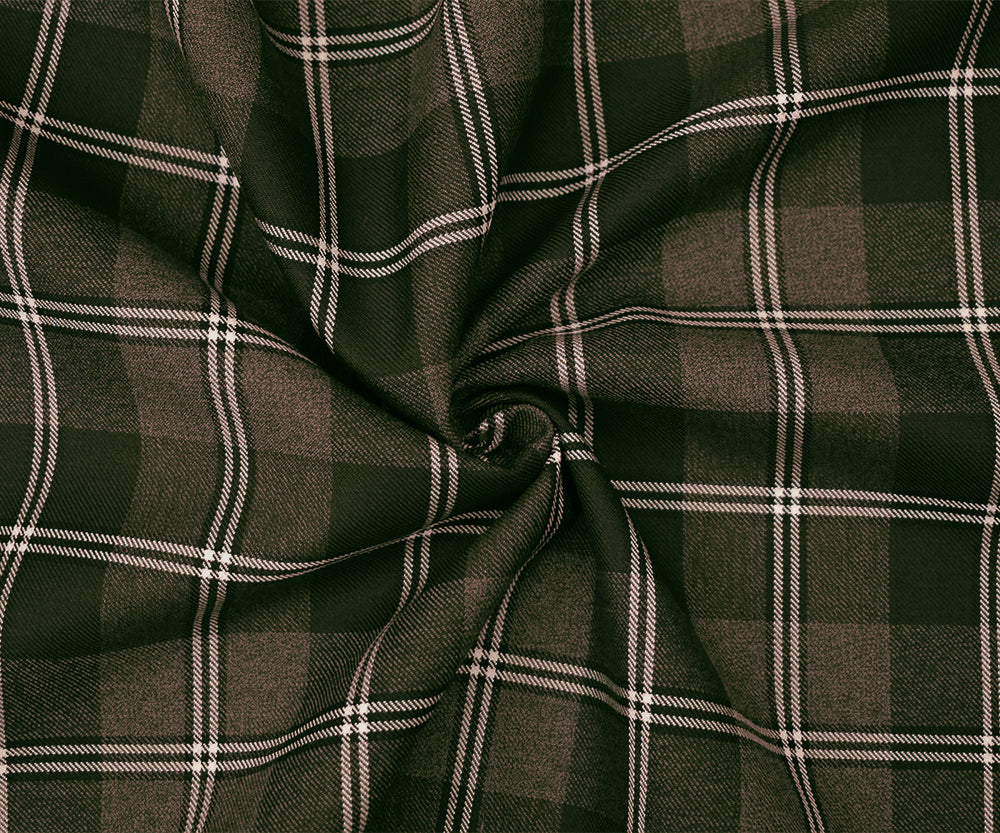 Brown-Black-White Wool Poly Plaid Woven Twill Suiting Fabric