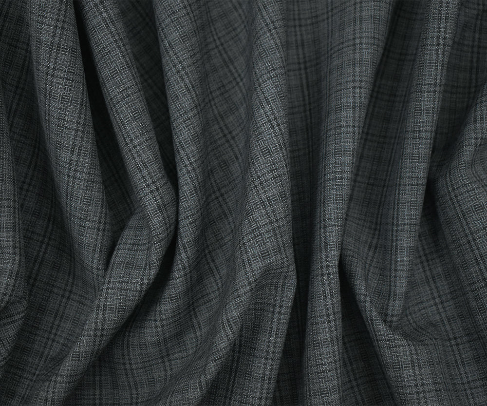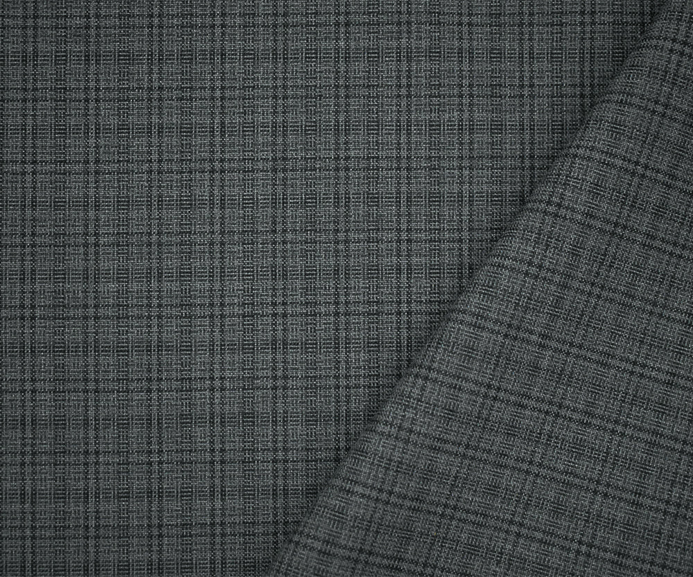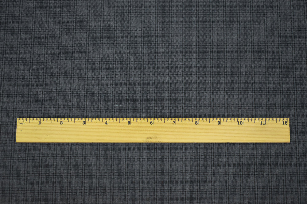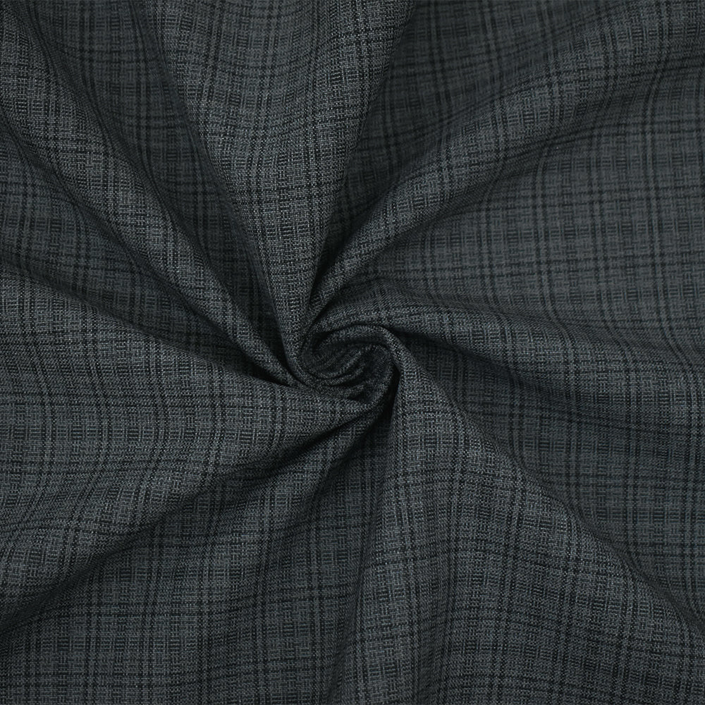 Gray-Black Wool-Polyester Plaid Woven Shirting Fabric