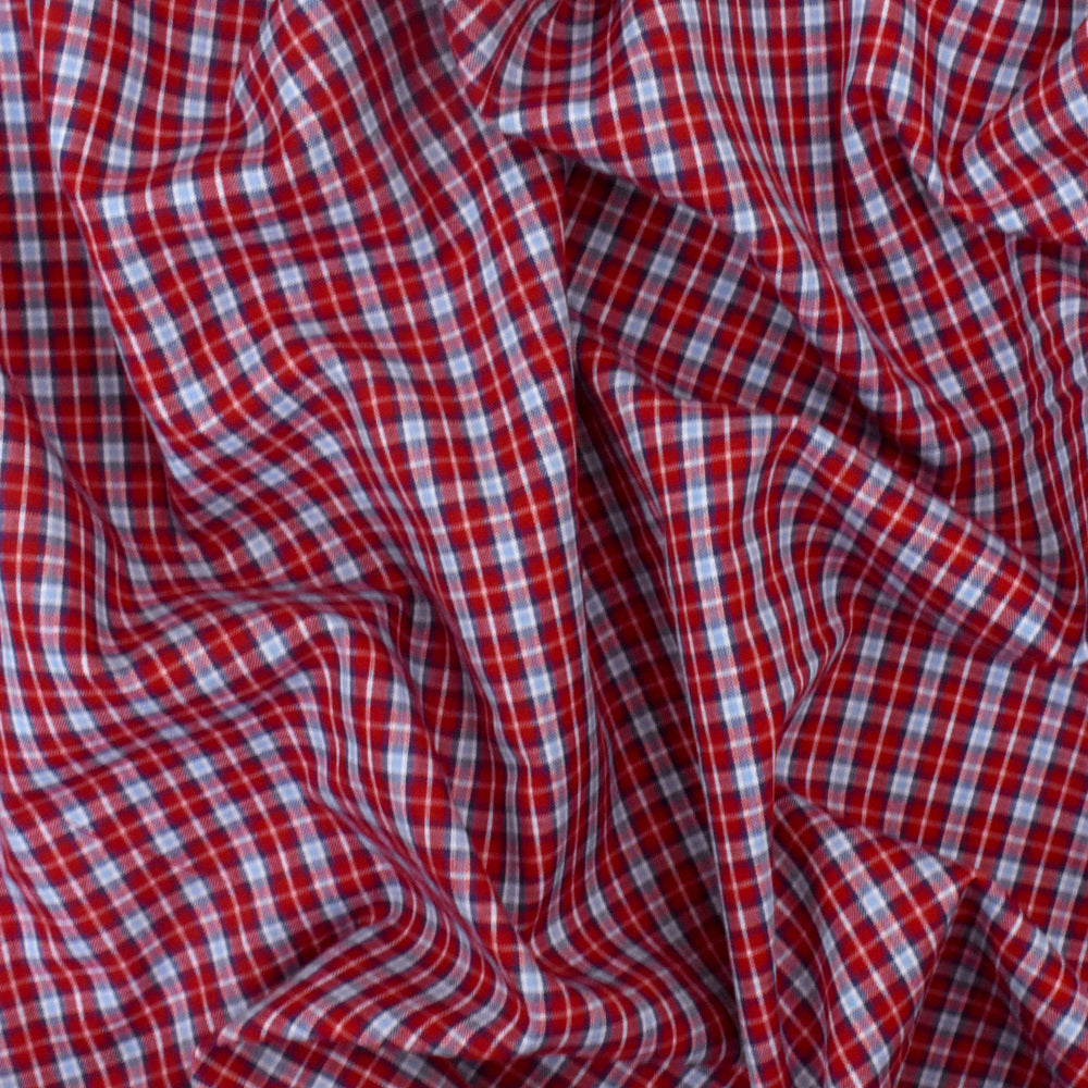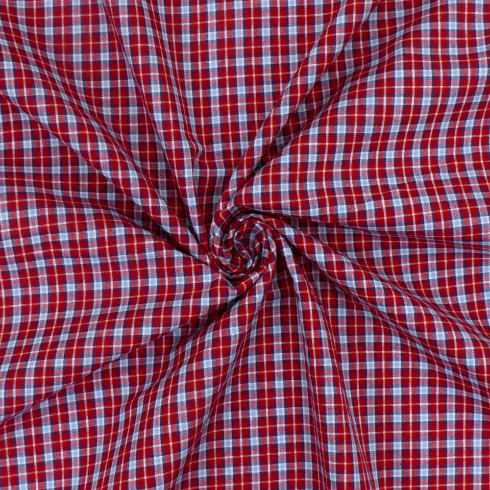 Red-Blue-Multi Plaid Cotton Polyester Madras Woven Fabric