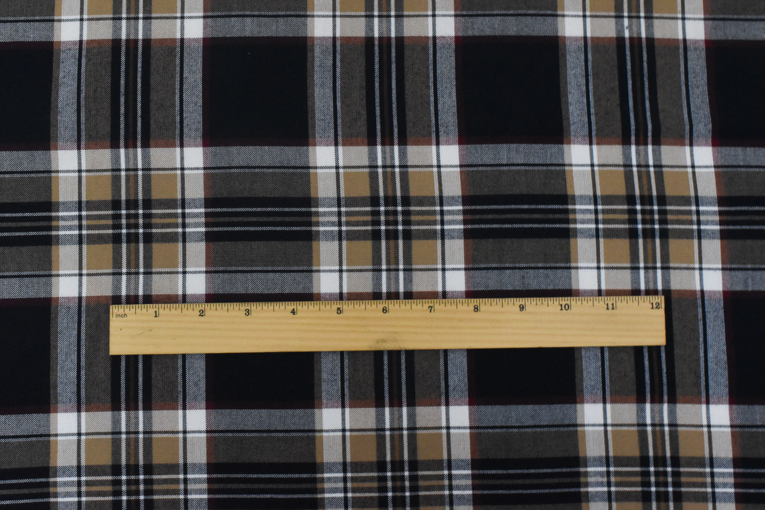 School Beige-Blue-Multi Plaid Poly Madras Woven Suiting Fabric