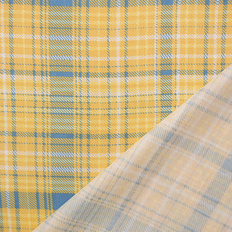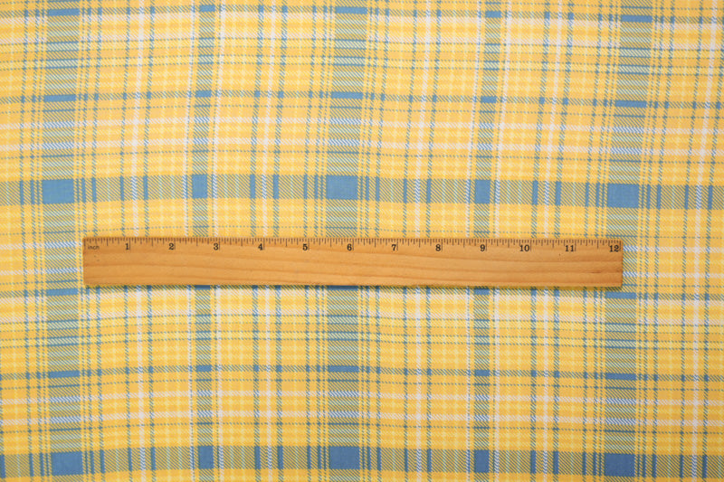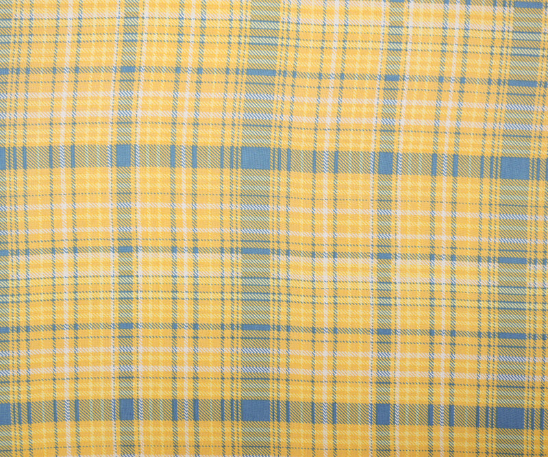 Yellow-Blue-White Rayon Plaid Printed Challis Woven Fabric
