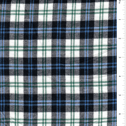 Black, White, Blue, and Green Plaid Flannel Fabric