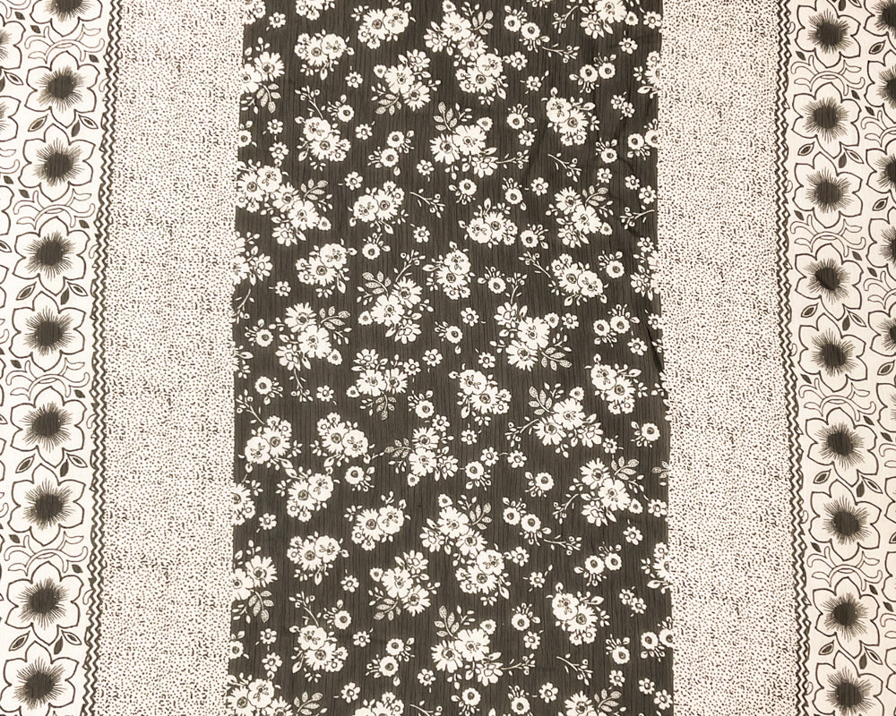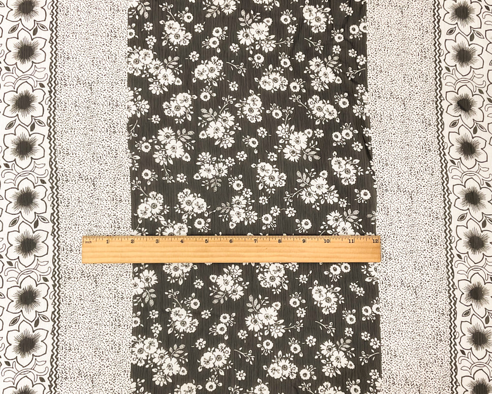 Black Poly Stripe Floral Print Crinkle Yoryu Chiffon Woven Fabric