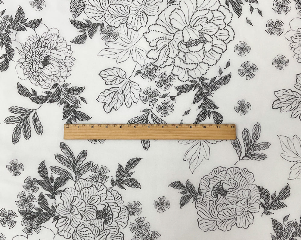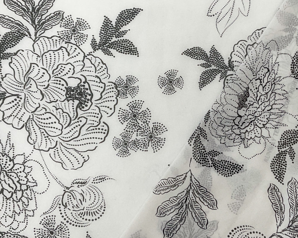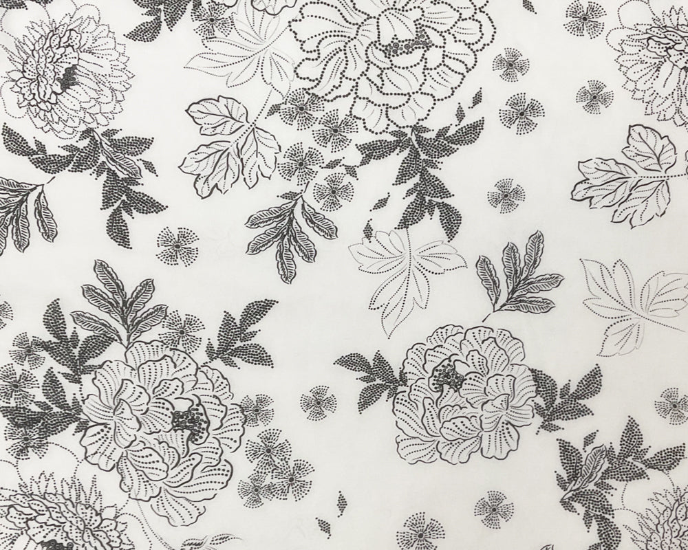 Black-White Abstract Floral Printed Pebble Chiffon Woven Fabric