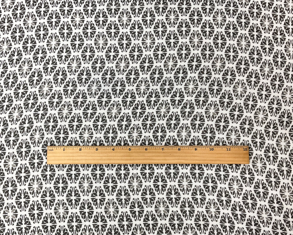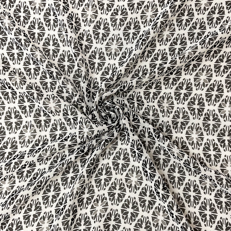 Black-White-Gray Poly Tile Floral Printed Chiffon Woven Fabric