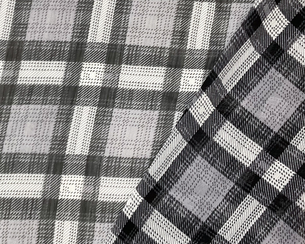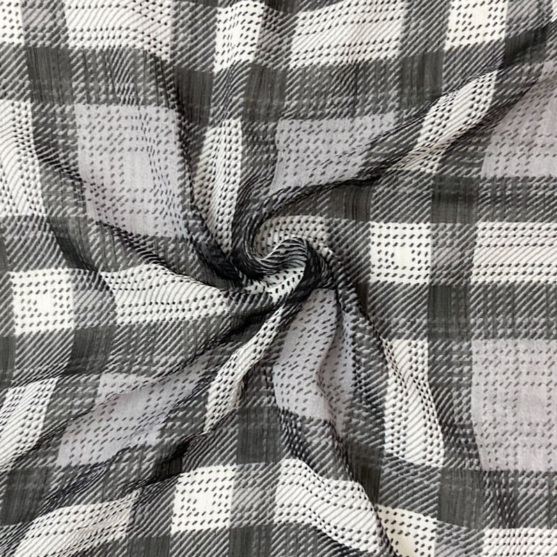 Black-White Poly Plaid Printed Yoryu Chiffon Woven Fabric