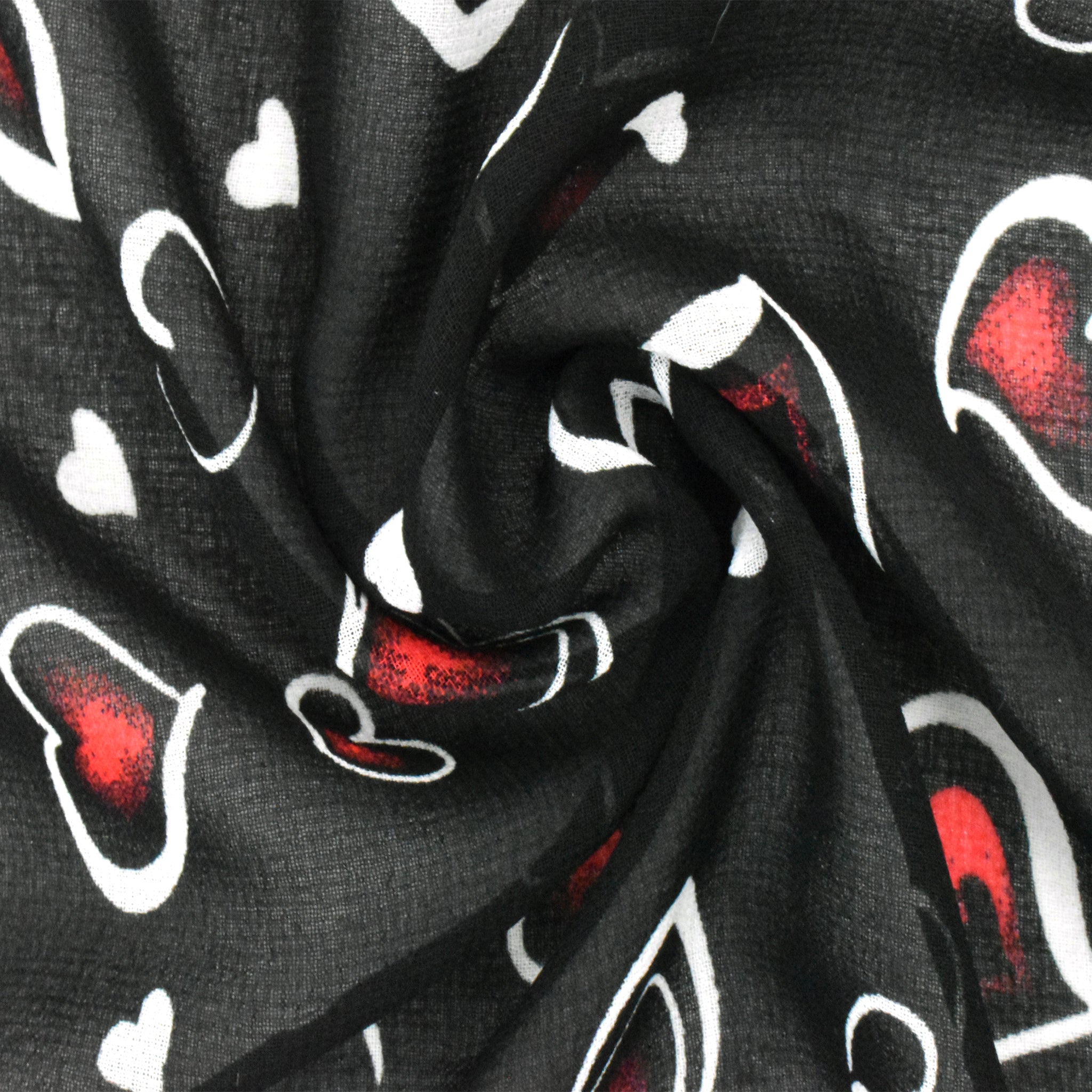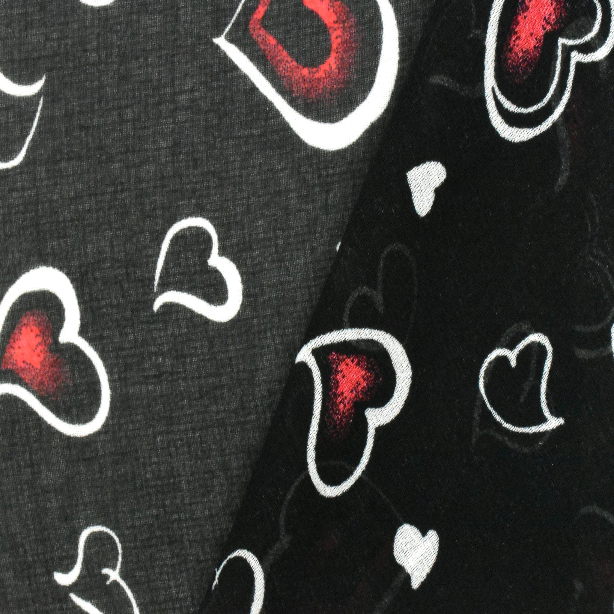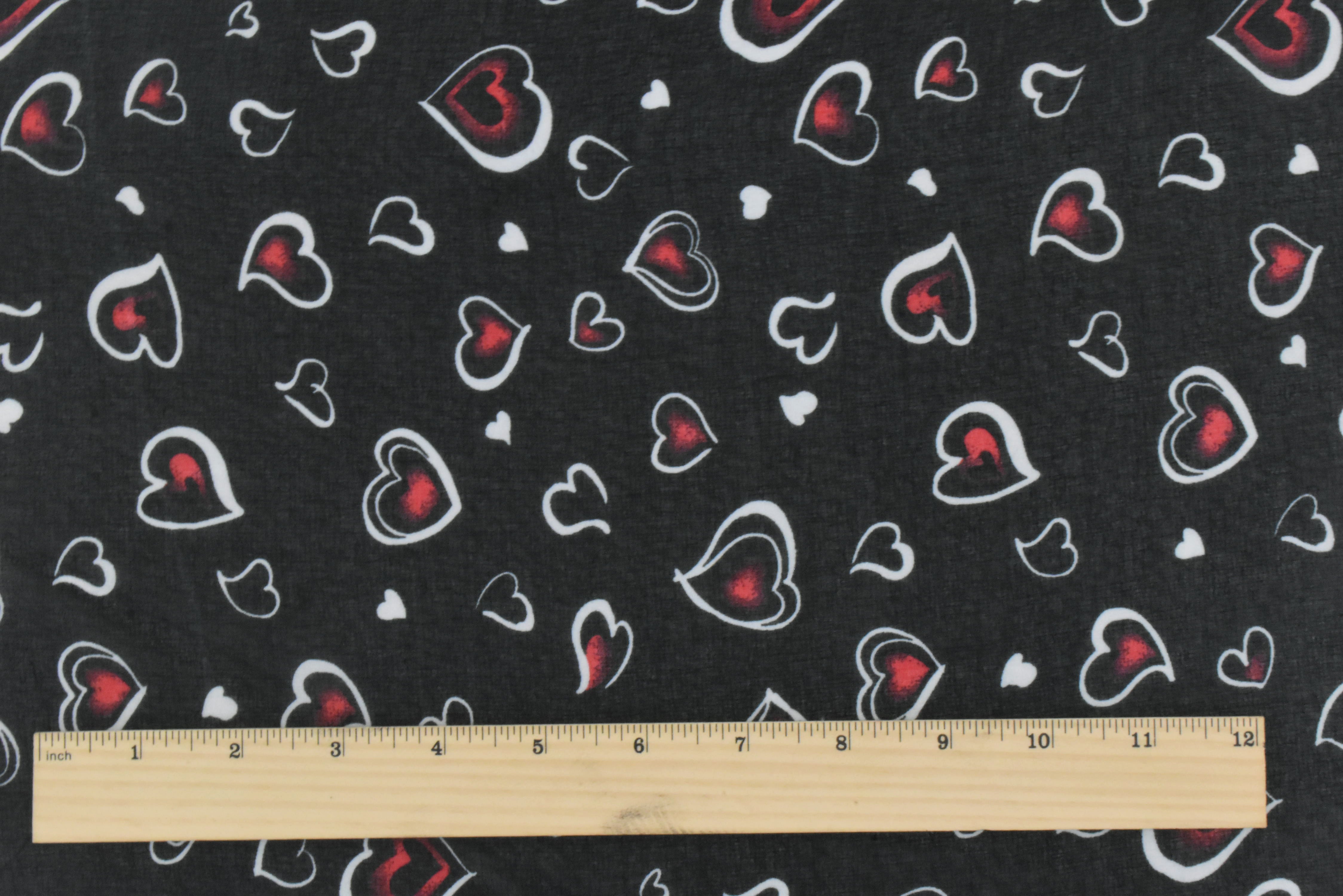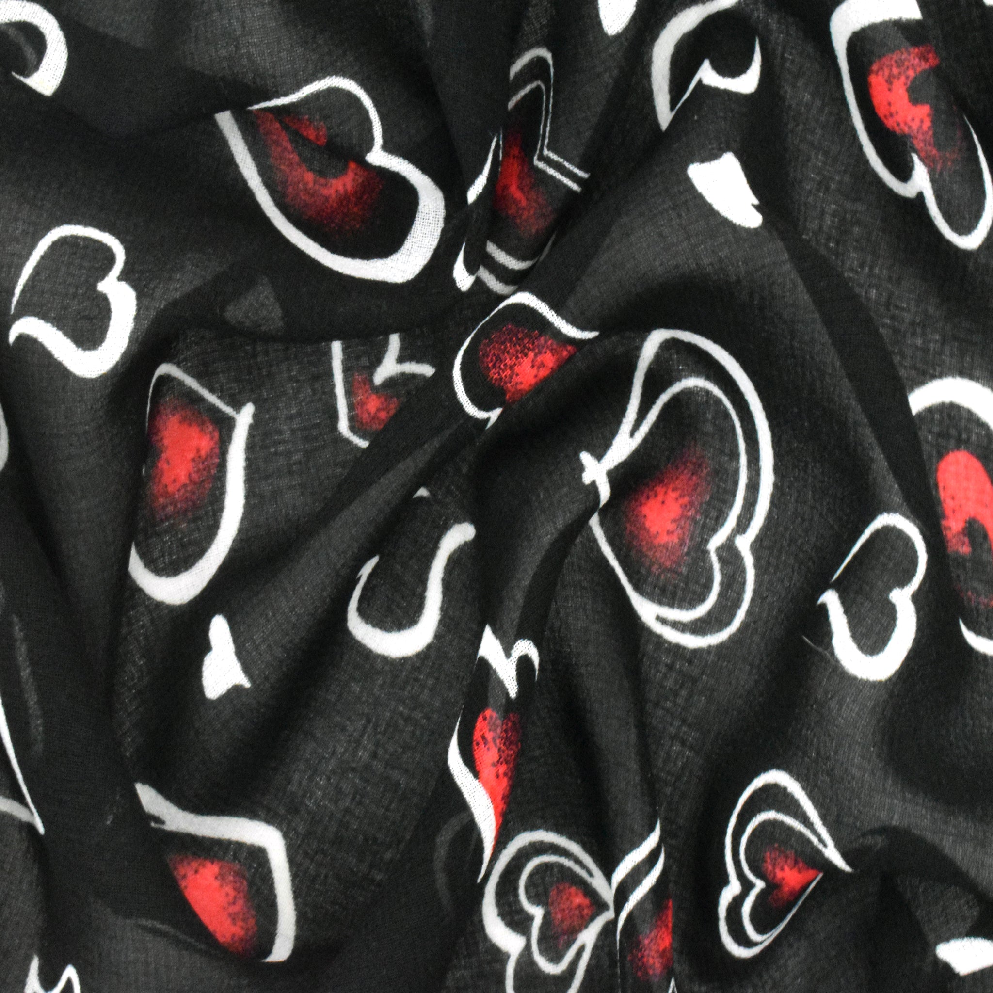 Black-White-Red Heart Printed Poly Chiffon Woven Fabric