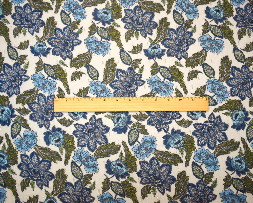 -Blue-Gold-Multi Floral Printed Metallic Crinkle Yoryu Chiffon Woven Fabric