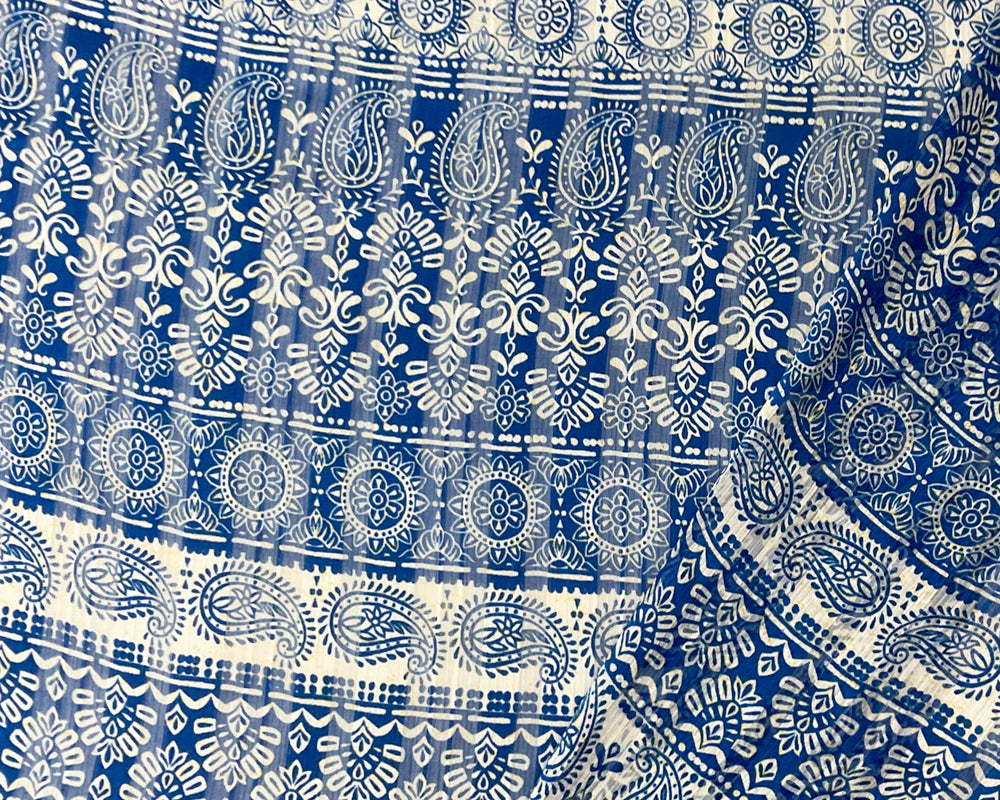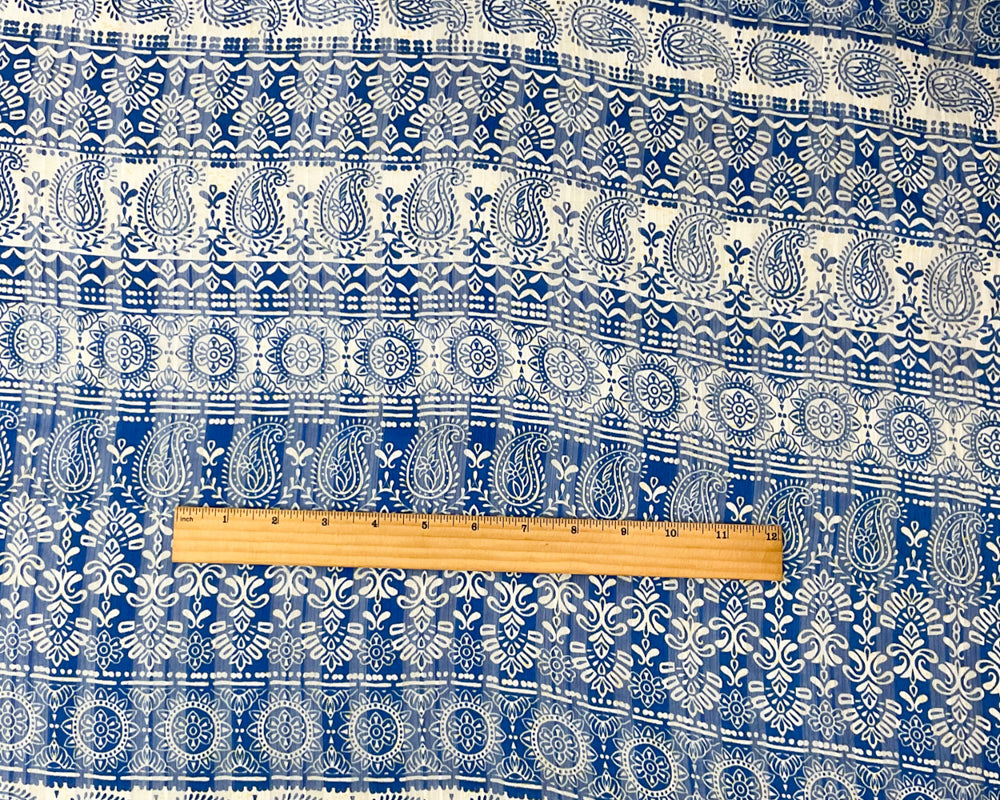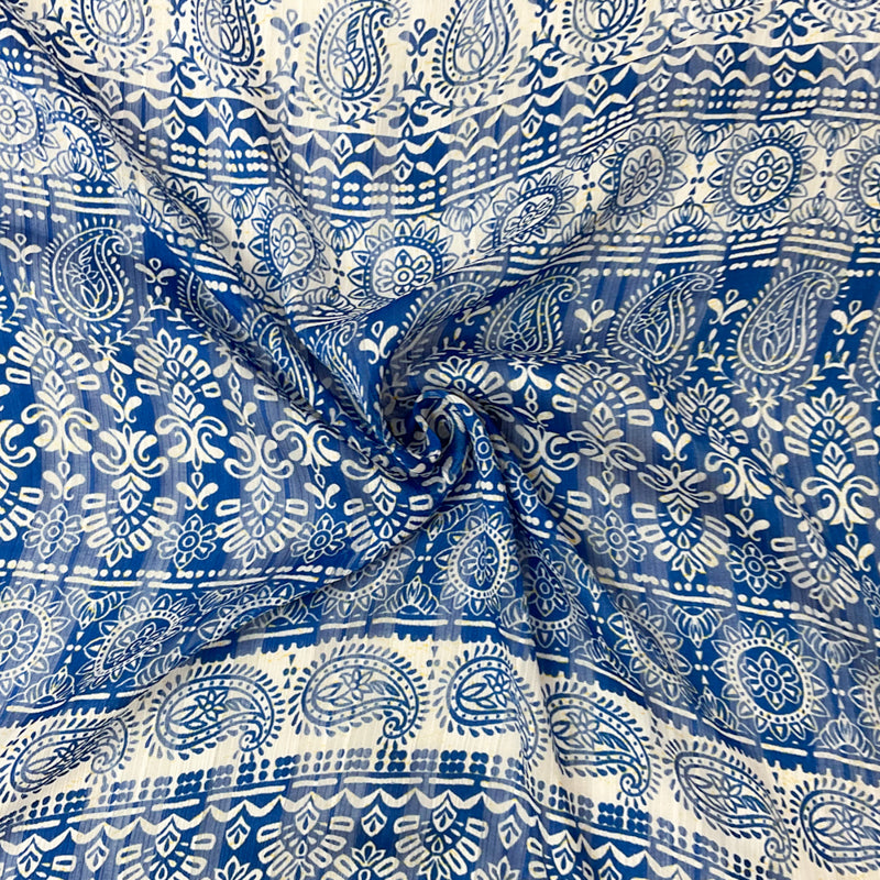 Blue-Multi Poly Paisley Print Satin Stripe Chiffon Woven Fabric