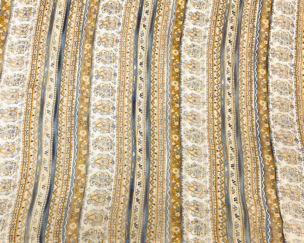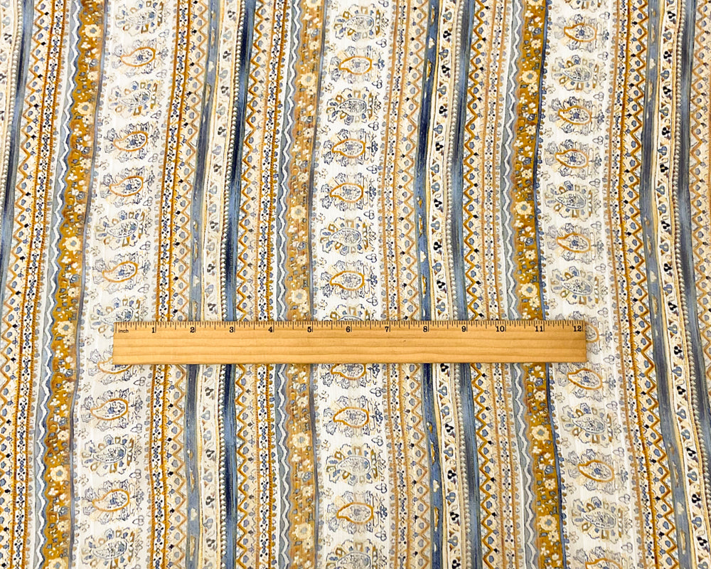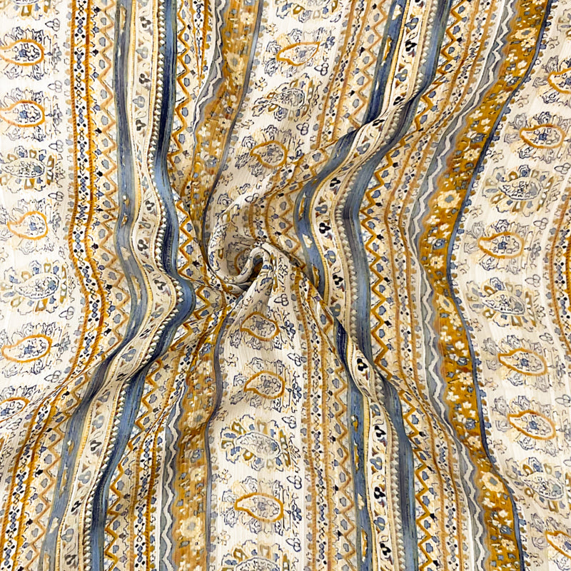 Blue-Multi Poly Paisley Printed Satin Stripe Chiffon Woven Fabric