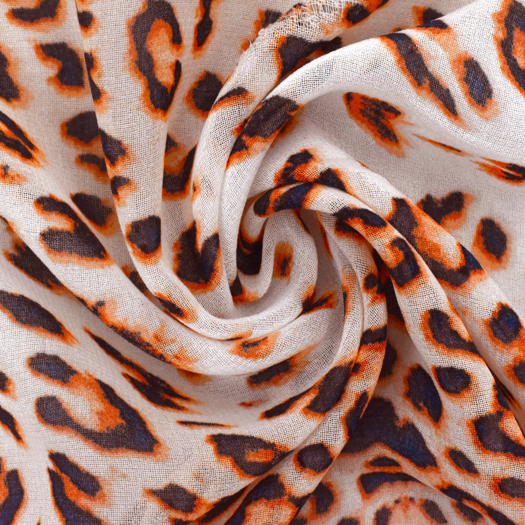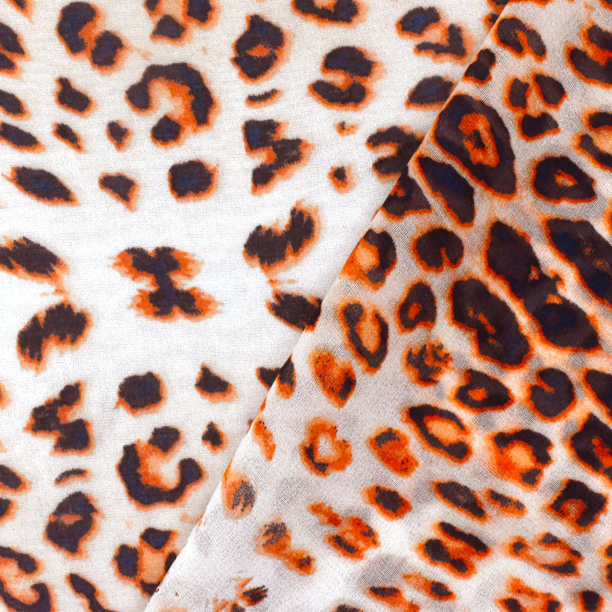 Burnt Orange-Navy-Ivory Leopard Printed Poly Chiffon Woven Fabric