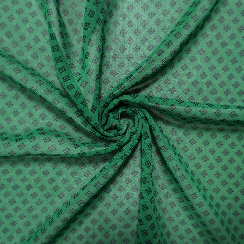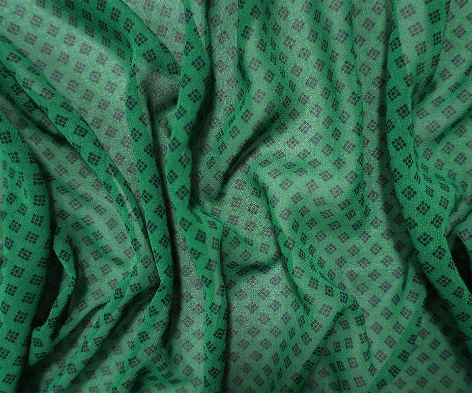 Green-Black Poly Diamond Printed Chiffon Woven Fabric