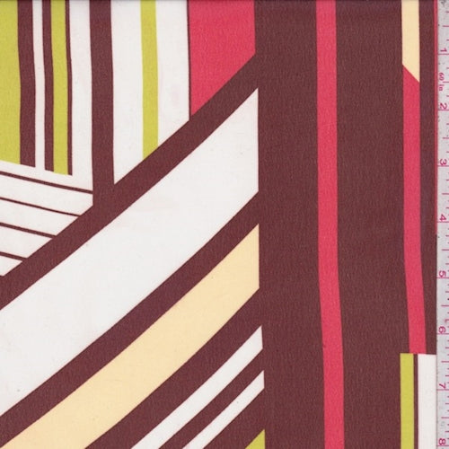 Mahogany/Avocado/Coral Geo Stripe Chiffon Fabric