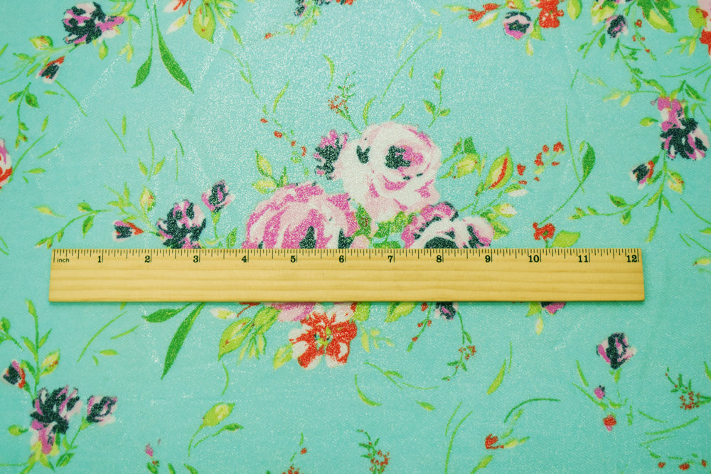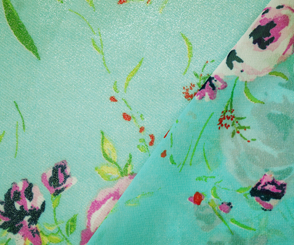 Pastel Teal-Silver Poly Floral Printed Chiffon Woven Fabric