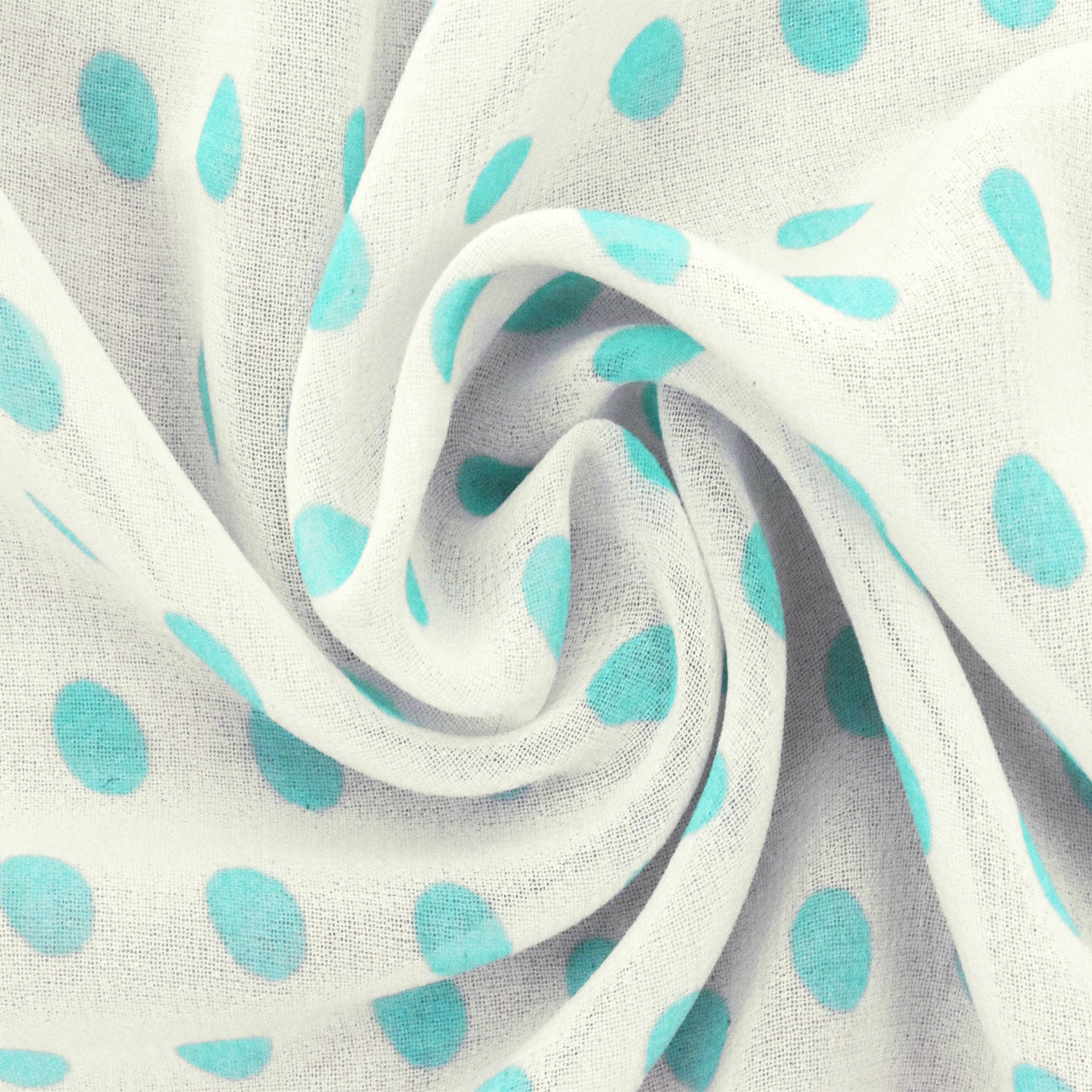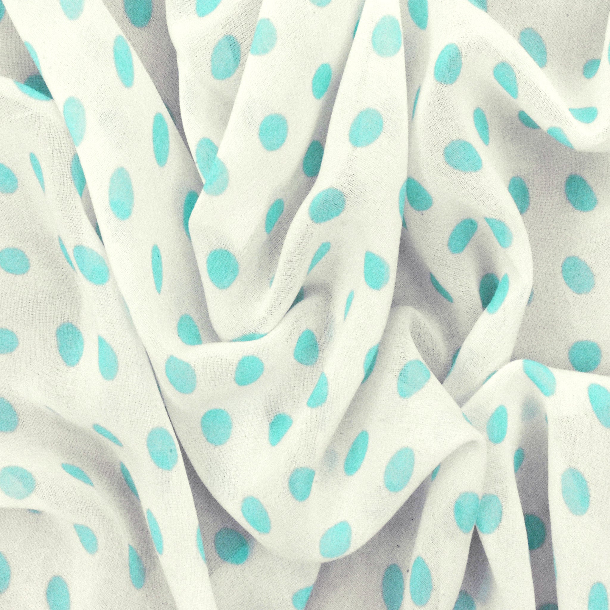 Pure White-Aqua Dot Printed Poly Chiffon Woven Fabric