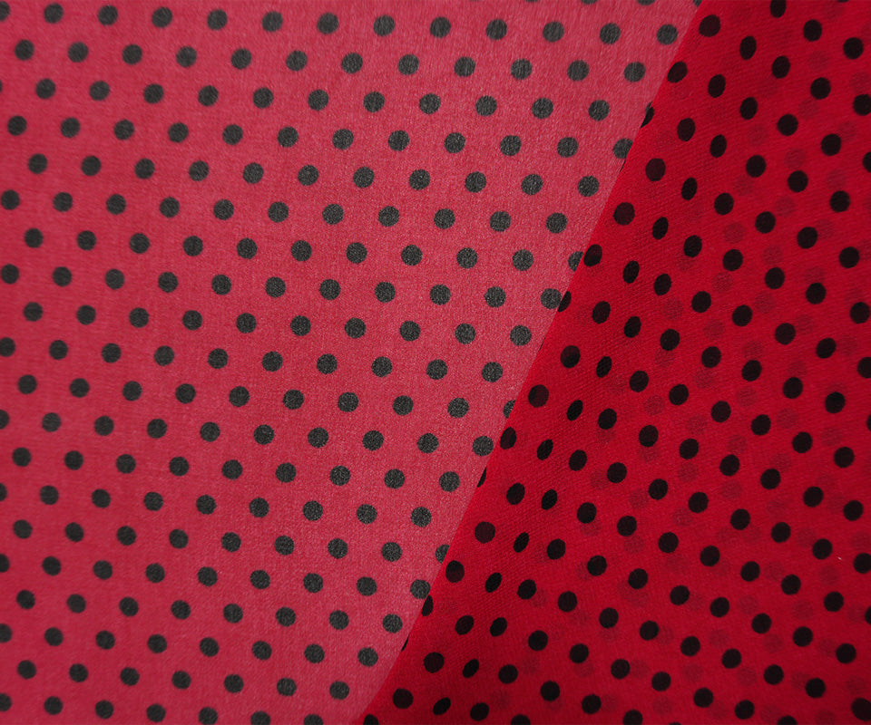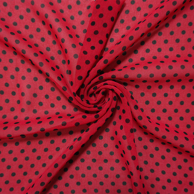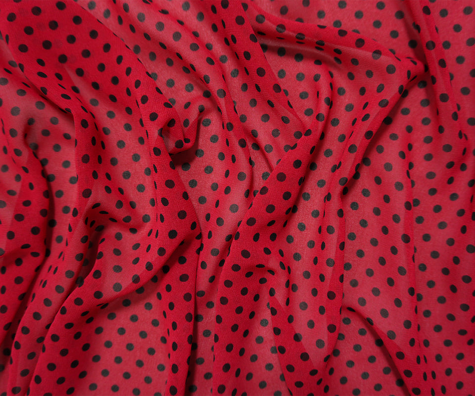 Red-Black Poly Dot Printed Chiffon Woven Fabric
