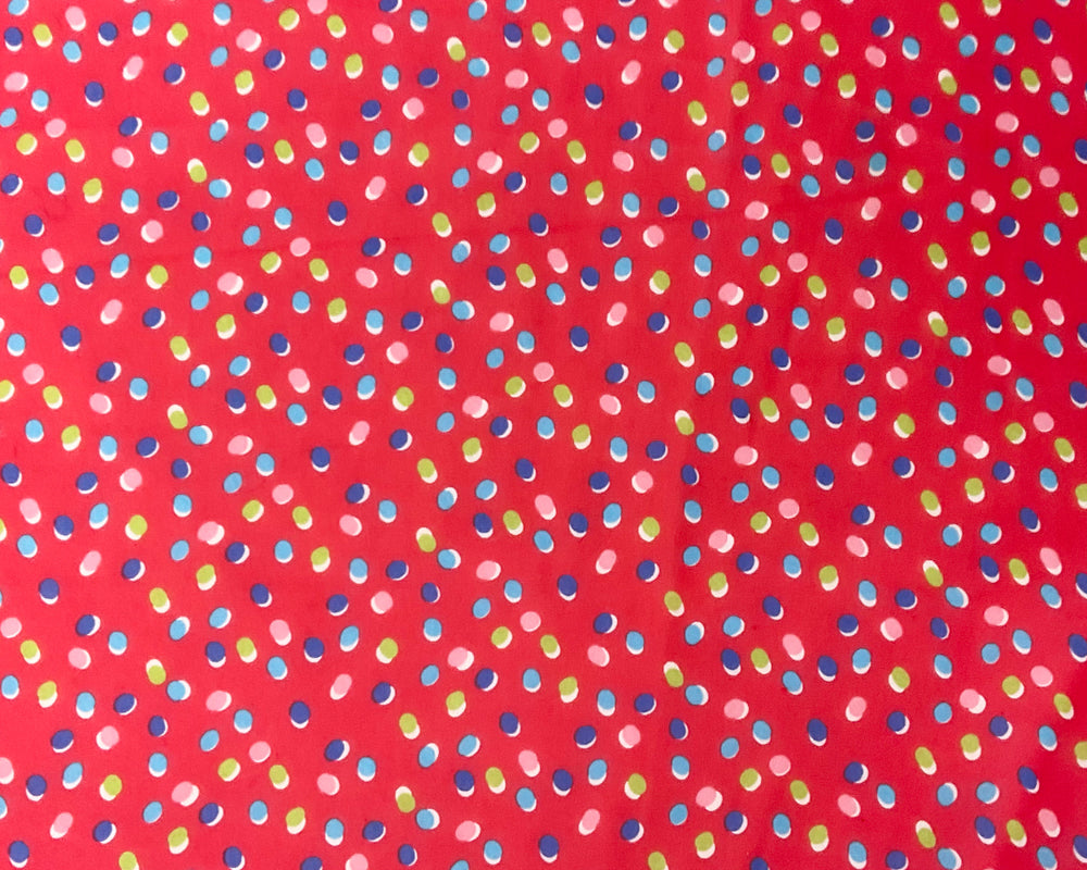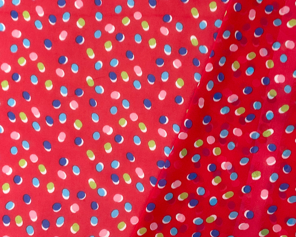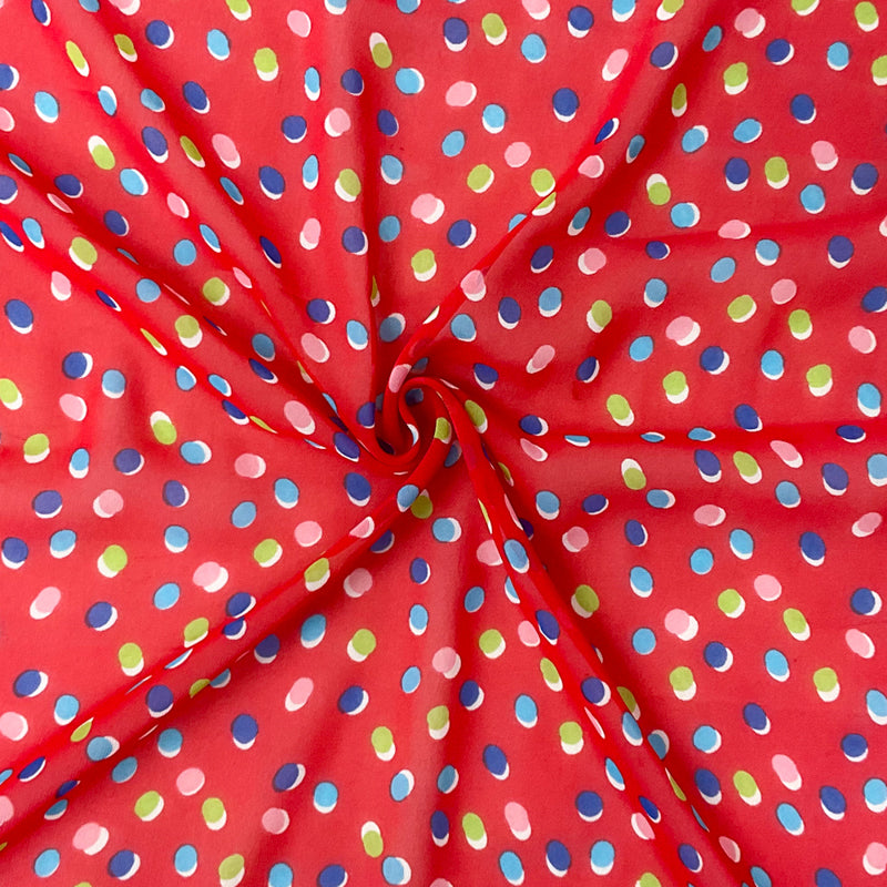 Red-Blue-Multi Poly Dot Printed Chiffon Woven Fabric
