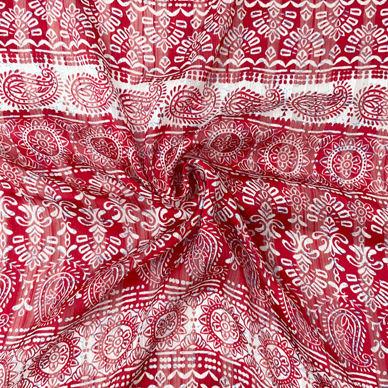 Red-Multi Stripe Paisley Print Satin Stripe Chiffon Woven Fabric