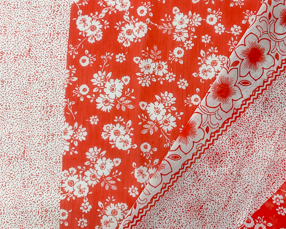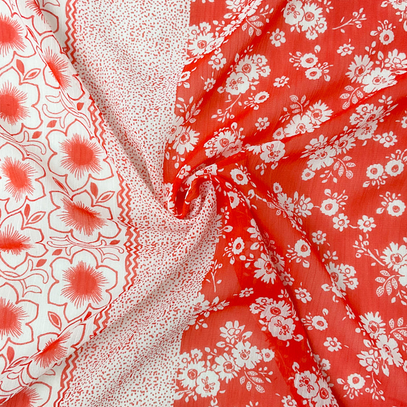 Red Orange Poly Floral Printed Crinkle Yoryu Chiffon Woven Fabric