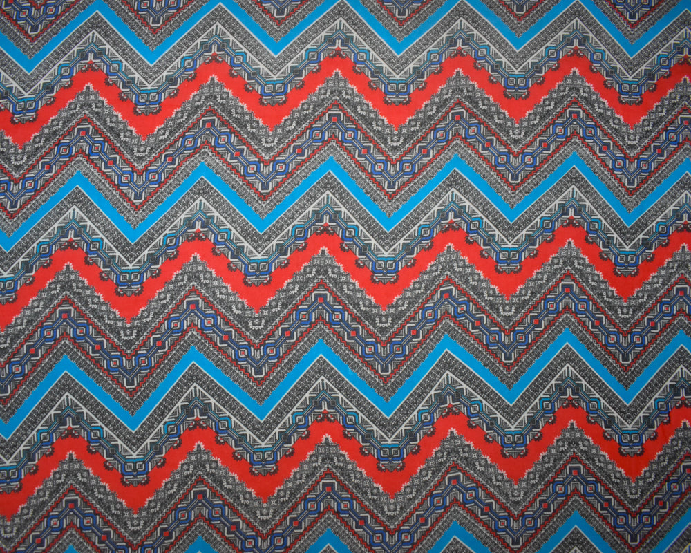 Red-Turquoise-Multi Poly Chevron Aztec Printed Chiffon Woven Fabric