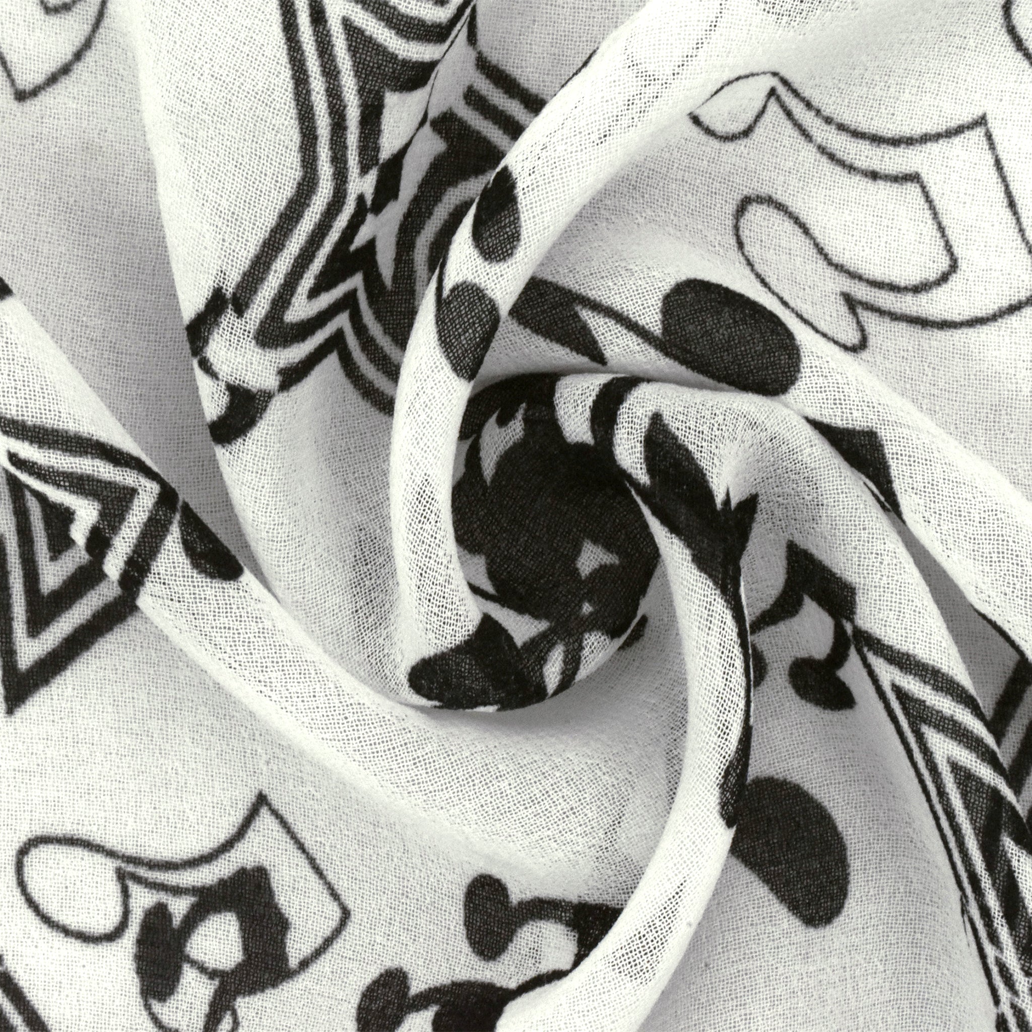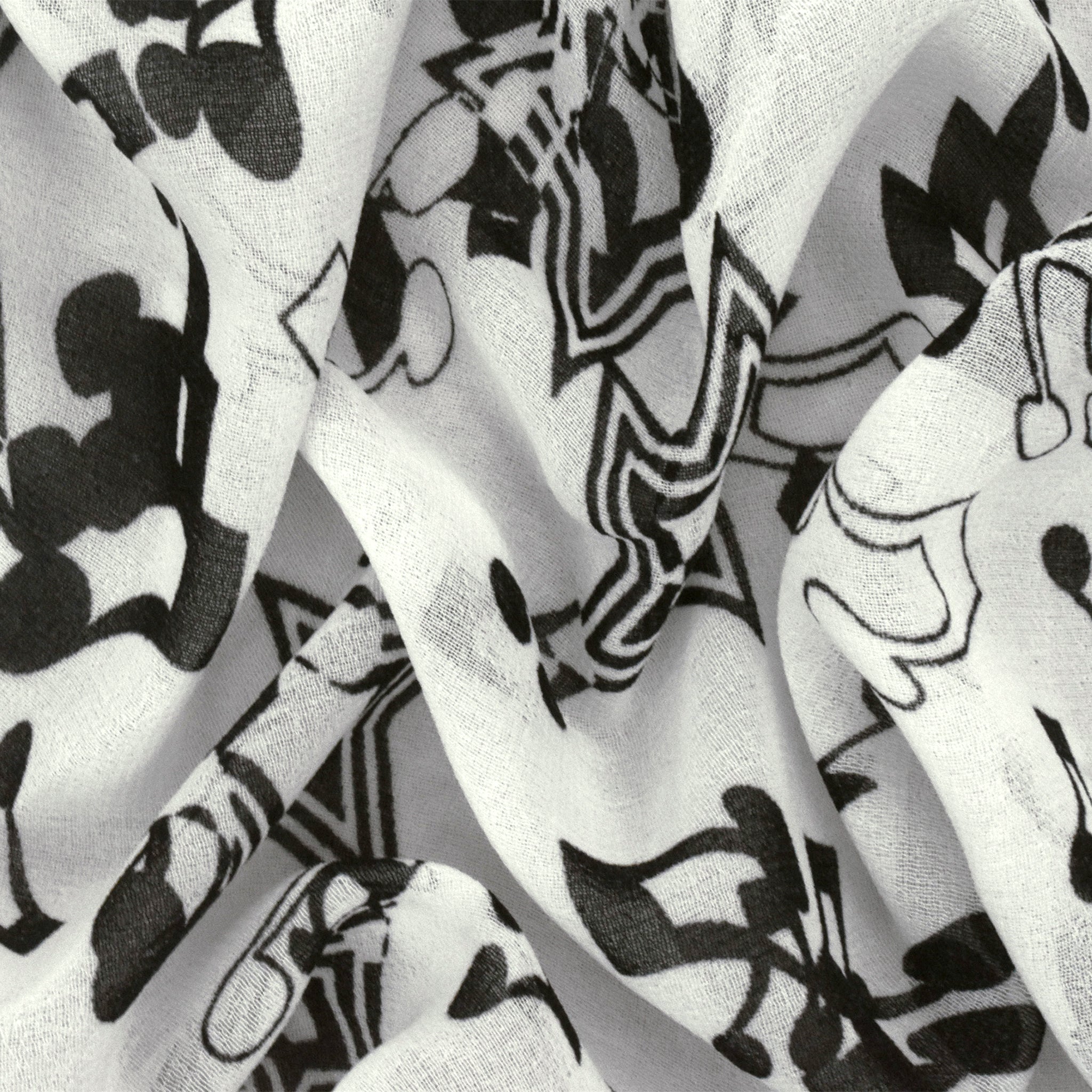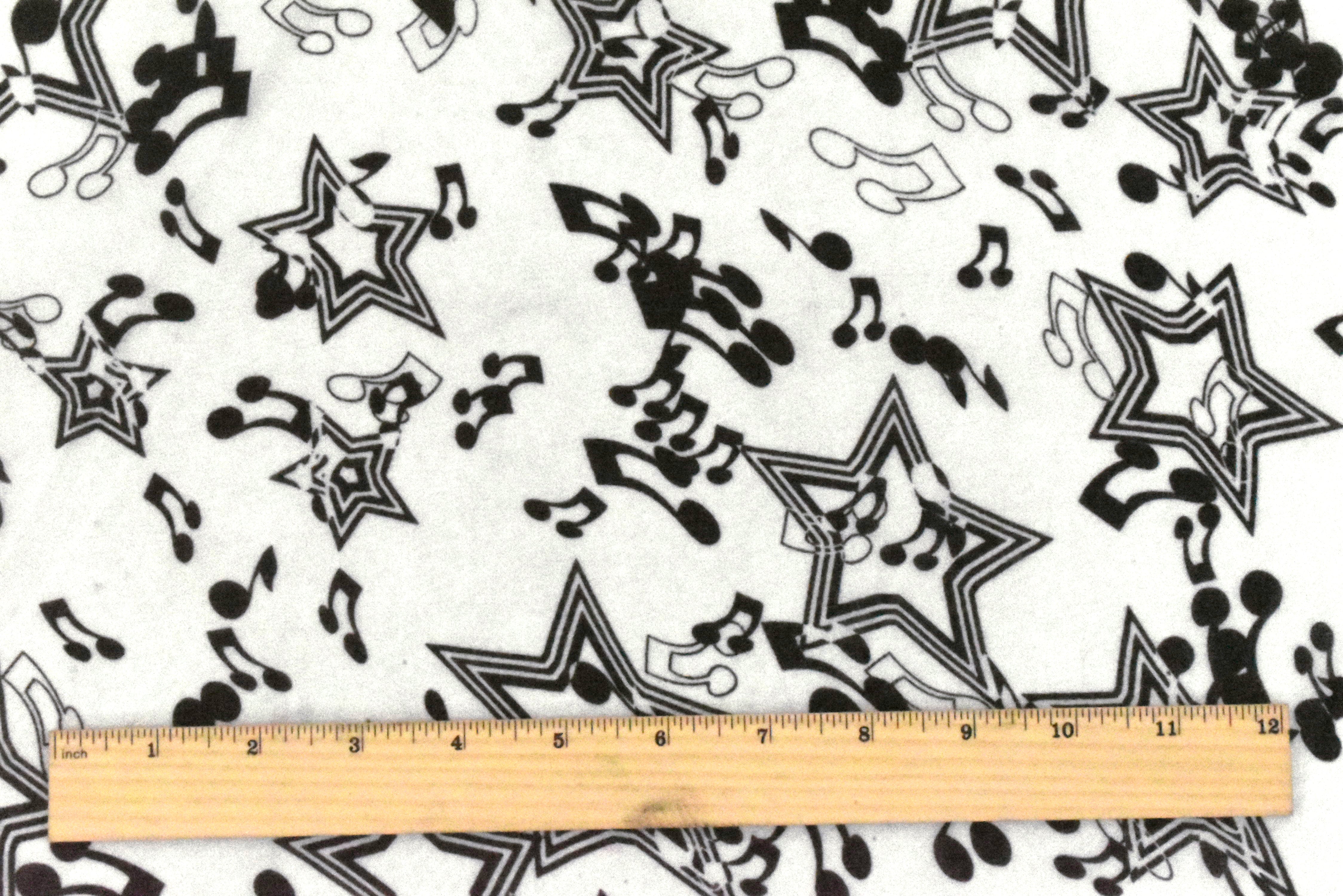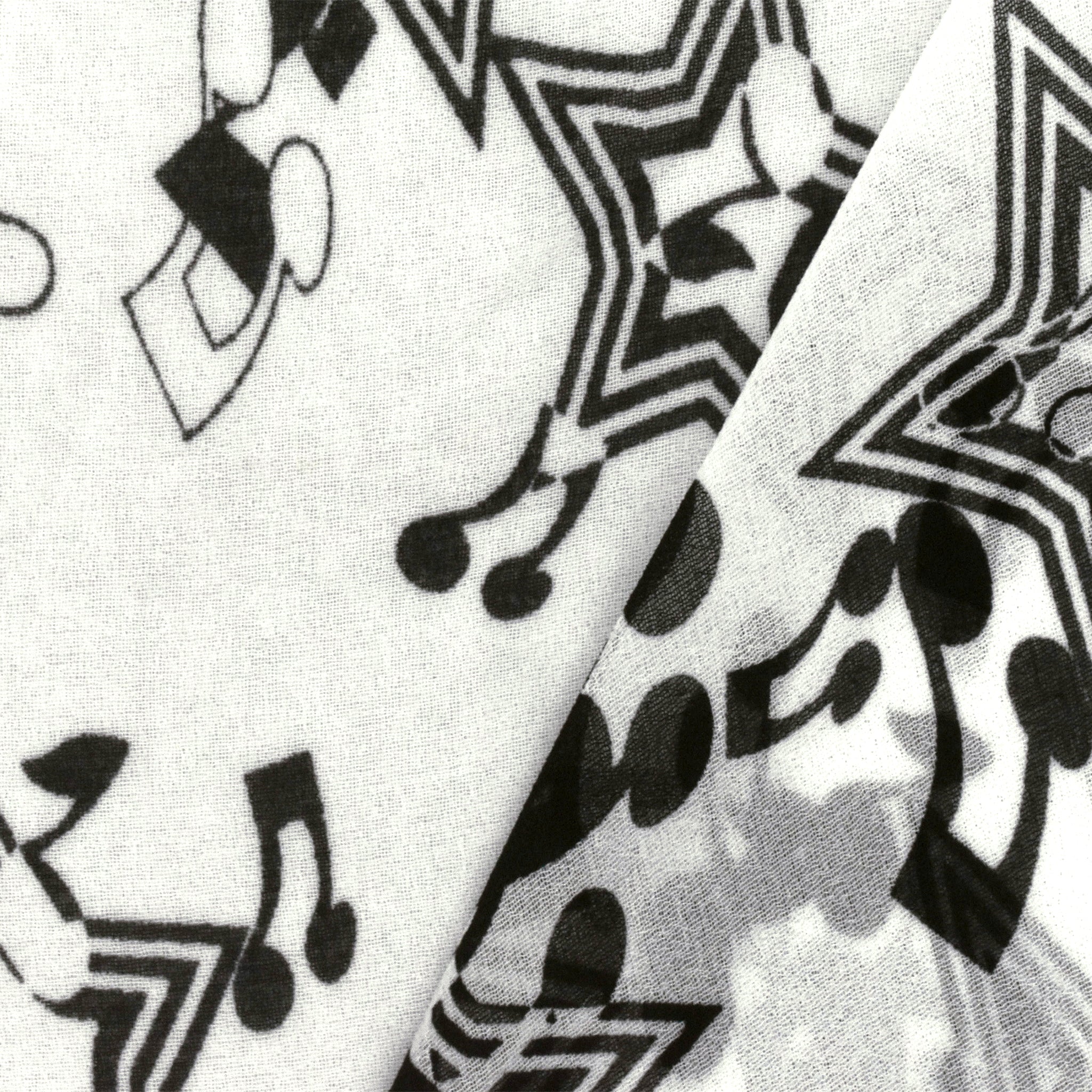 Snow White-Black Star Music Printed Poly Chiffon Woven Fabric