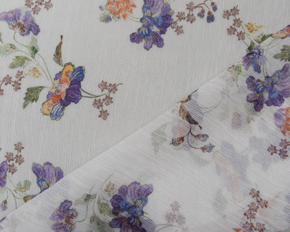White-Purple-Multi Poly Floral Printed Dobby Chiffon Woven Fabric