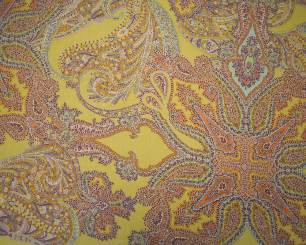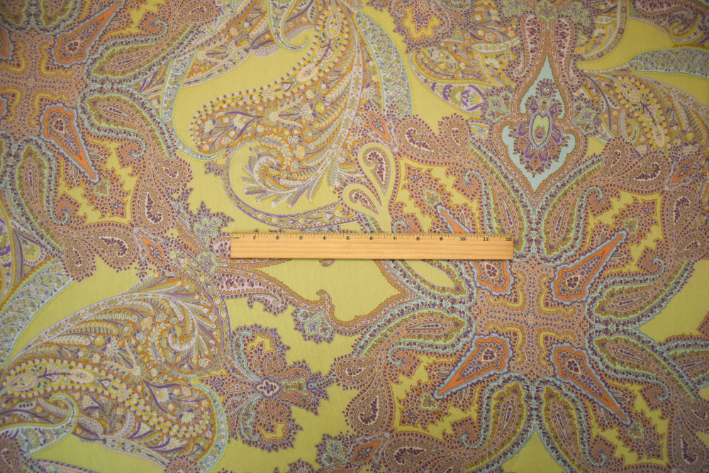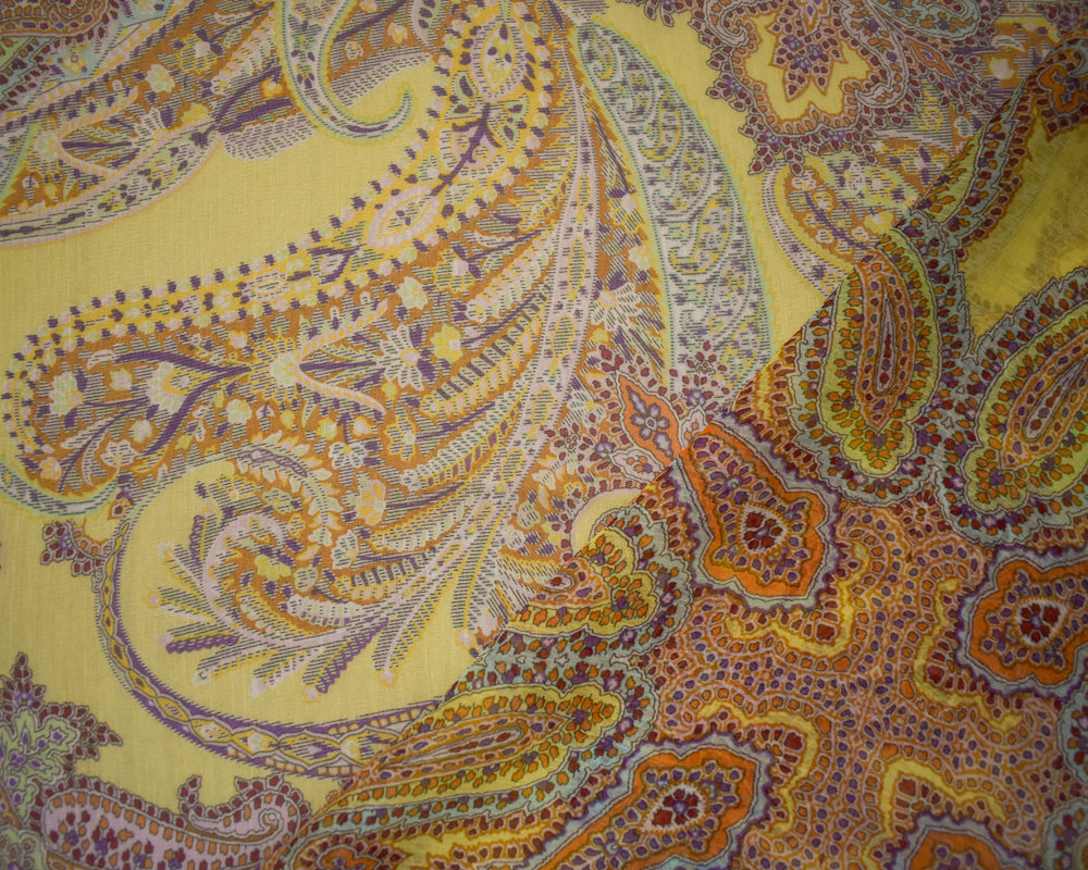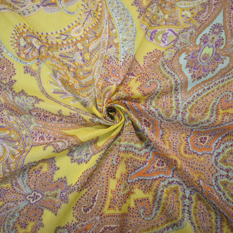 Yellow-Beige-Multi Poly Paisley Printed Crinkle Yoryu Chiffon Woven Fabric