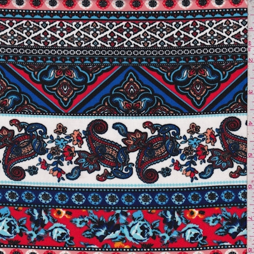 White/Red/Blue Deco Stripe Crepe De Chine Fabric