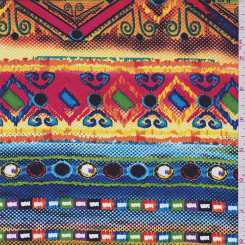Yellow/Royal Multi Decorative Stripe Crepe De Chine