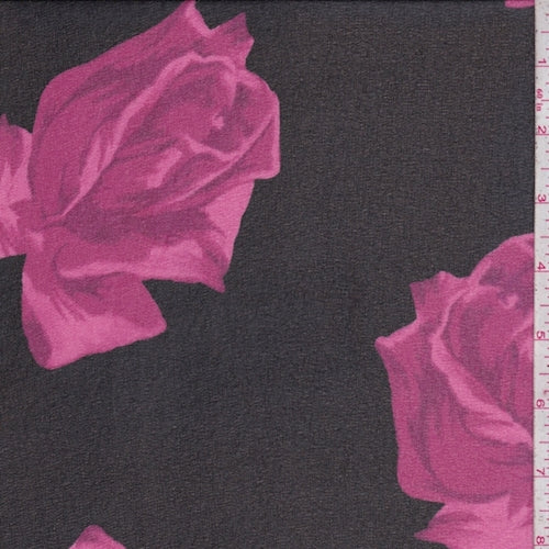Black/Fuchsia Rose Crepe Chiffon Fabric