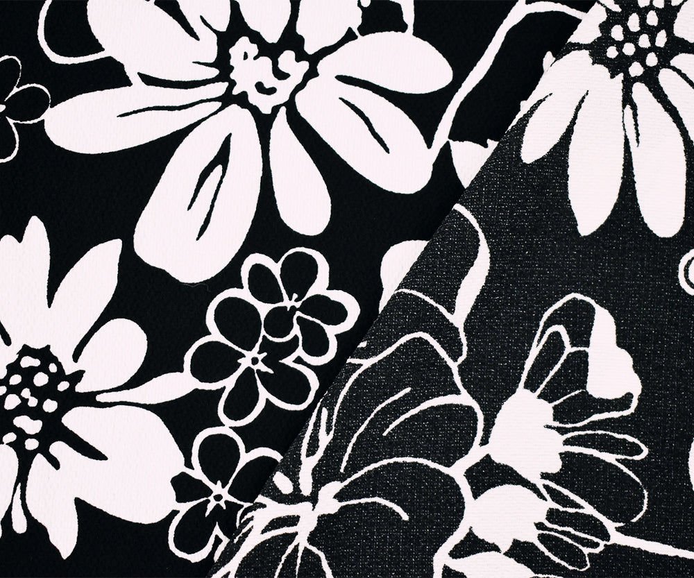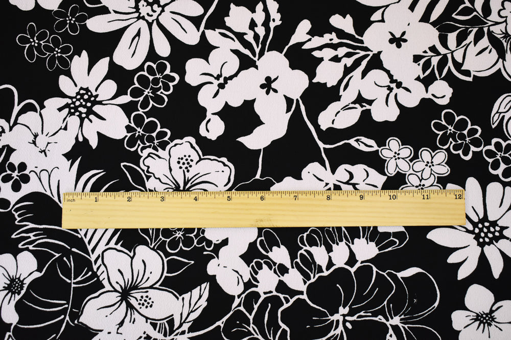 Black-Light Beige Floral Printed Poly Pebble Crepe Woven Fabric