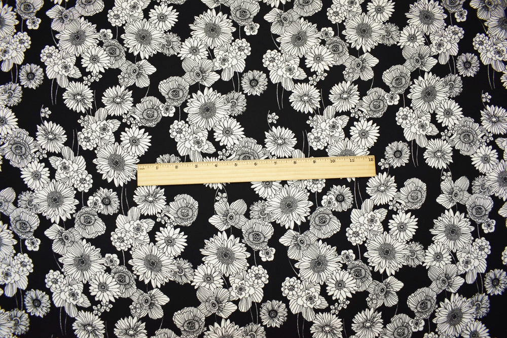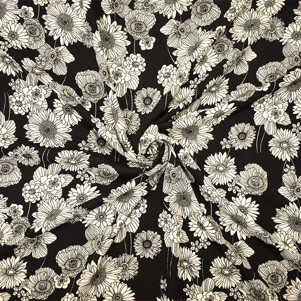 -Black-White Poly Floral Printed Crepe Momie Woven Fabric