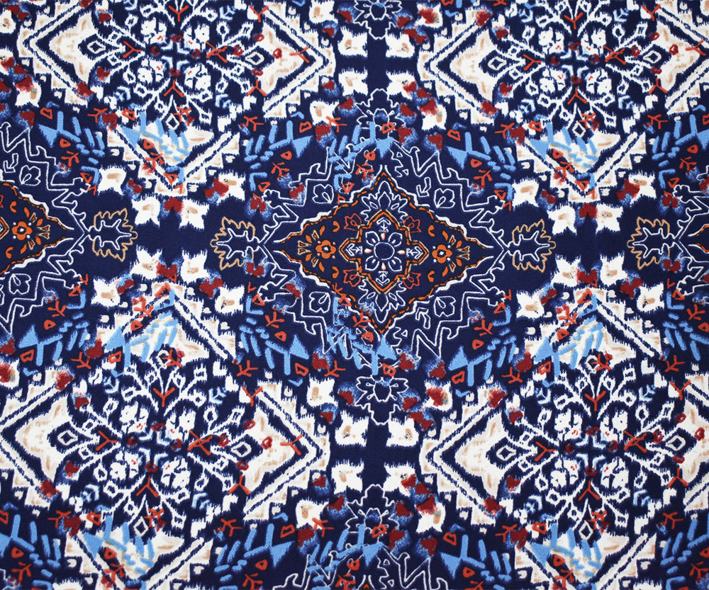 -100% polyester crepe momie georgette woven fabric printed with a Moroccan inspired pattern