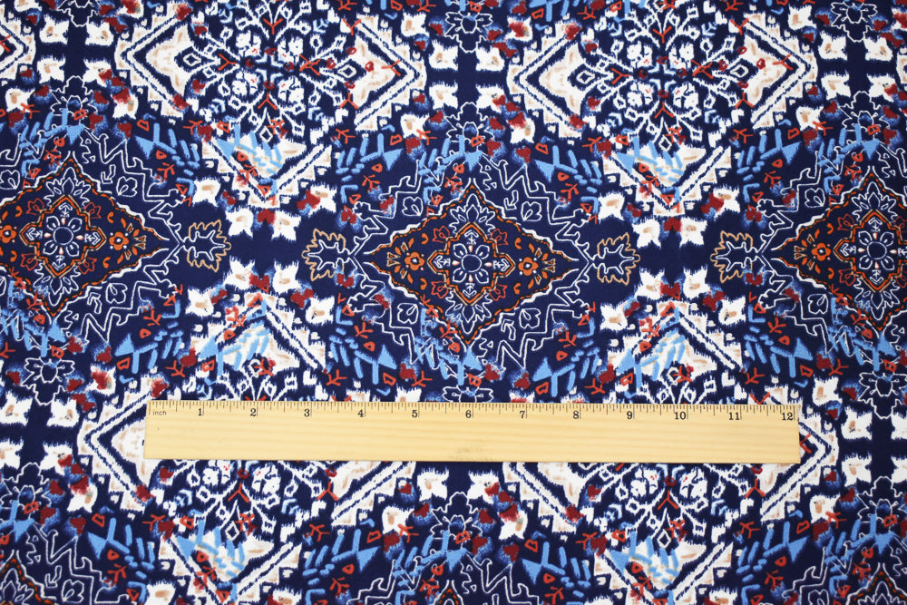 Blue-Brown-Multi Moroccan Diamond Print Poly Crepe Momie Georgette Fabric