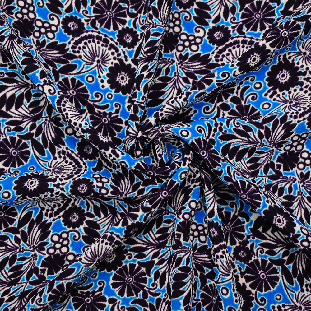 -100% Polyester pebble crepe woven fabric printed with a floral pattern. Line if needed.
