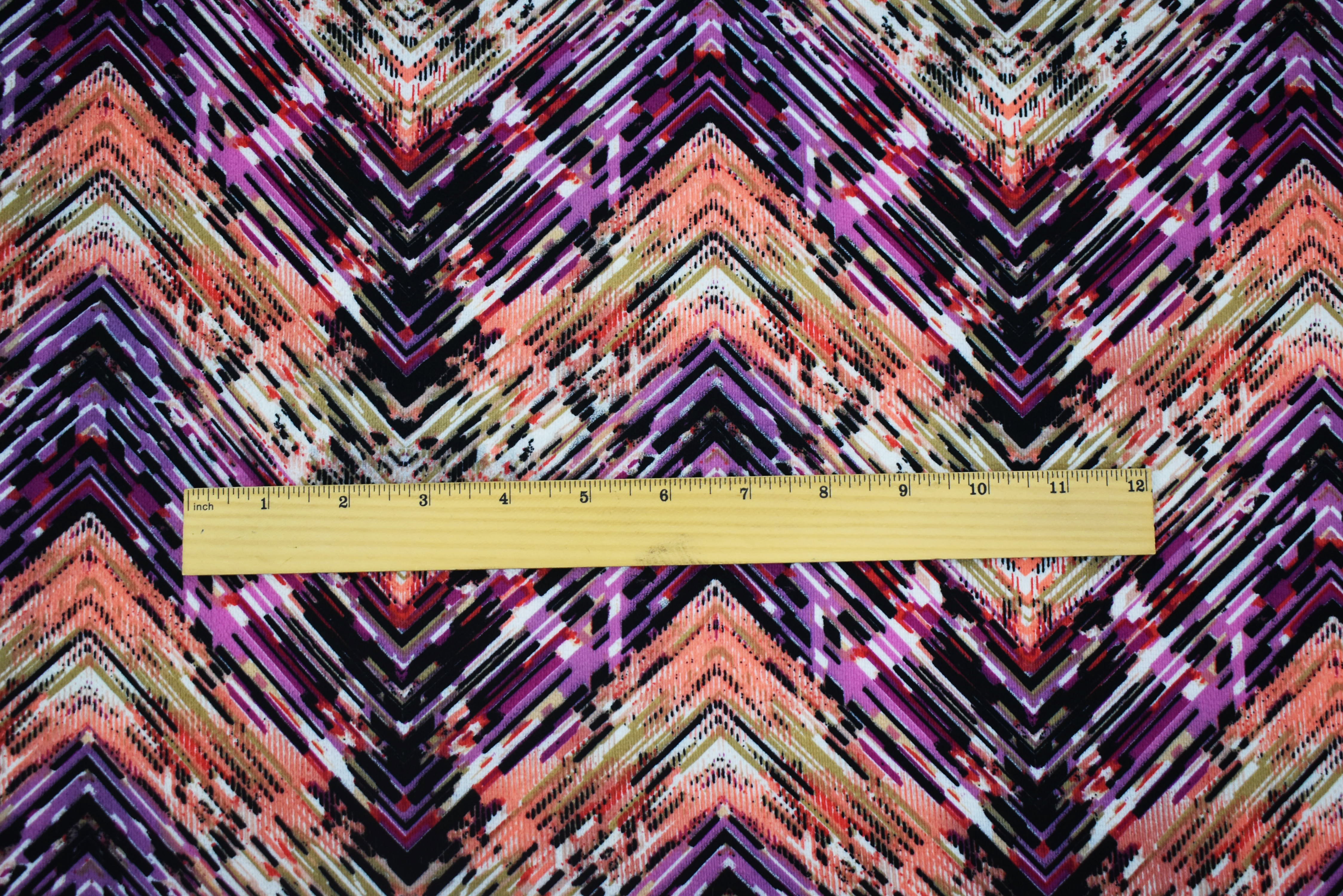 Purple-Coral-Multi Poly Abstract Tribal Chevron Printed Crepe Woven Fabric