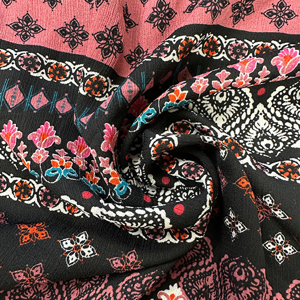 Rose Multi Stripe Print High Crepe Fabric