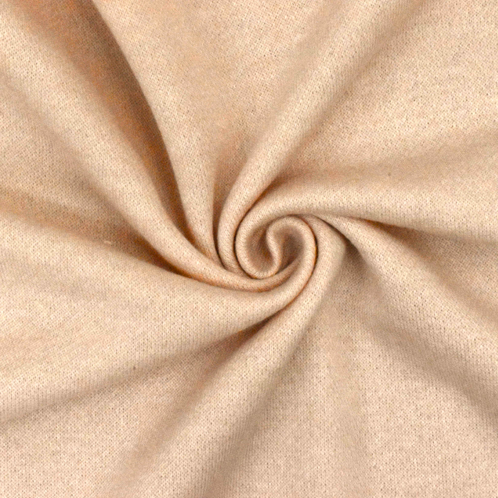 Heather Soft Beige-Ivory Polyester-Cotton Brushed Terry Fleece Knit Fabric