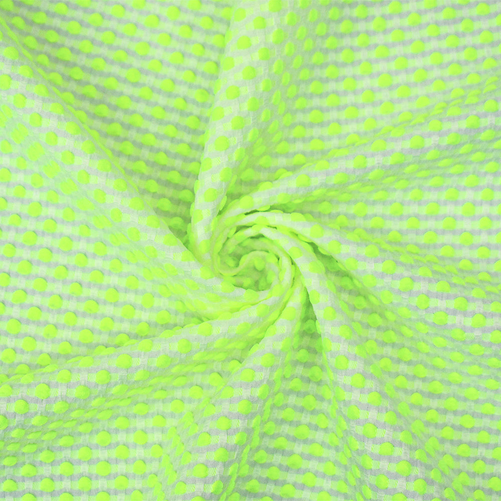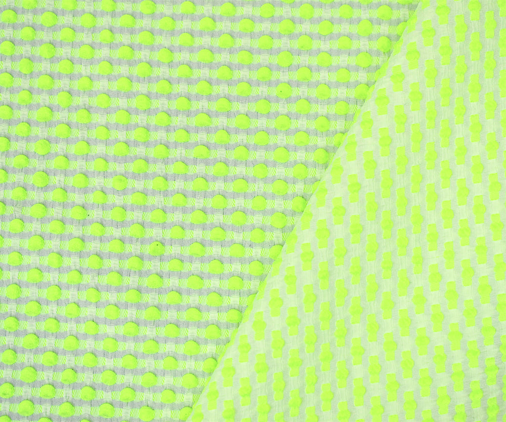 Neon Yellow-White Poly-Lycra Texture Dobby Jacquard Woven Fabric