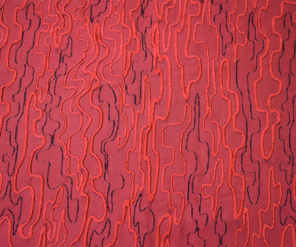 Red-Black Polyester Abstract Embroidered Jacquard Woven Fabric