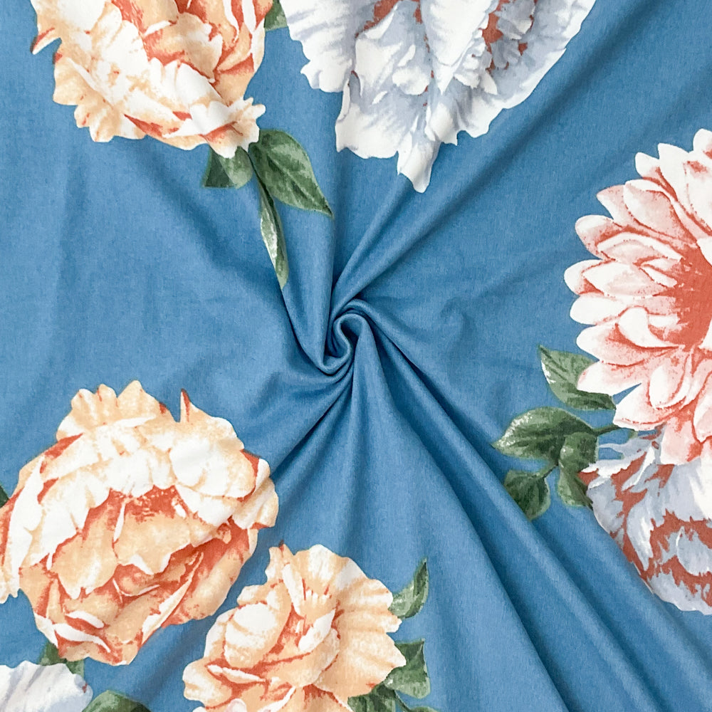 -Blue-Multi Poly Spandex Stretch Floral Print Double Brush Jersey Knit Fabric
