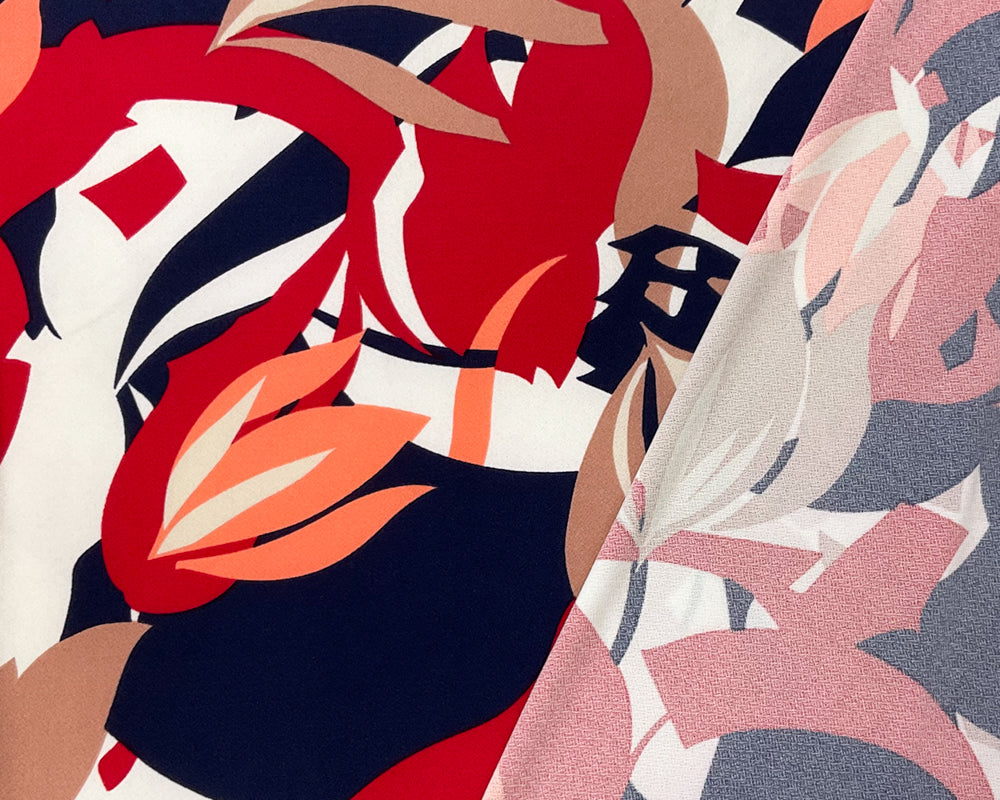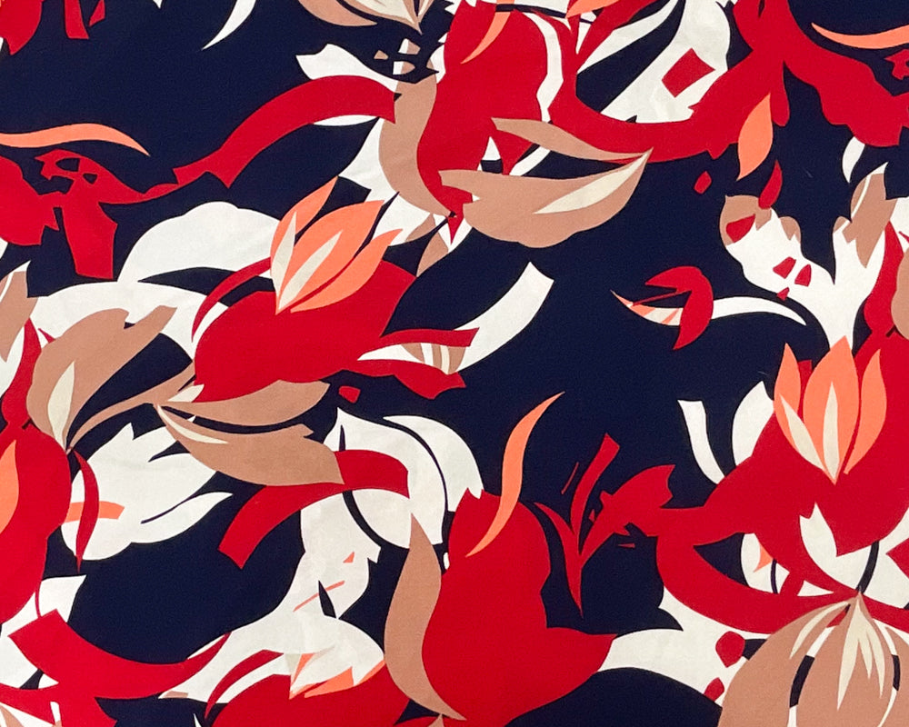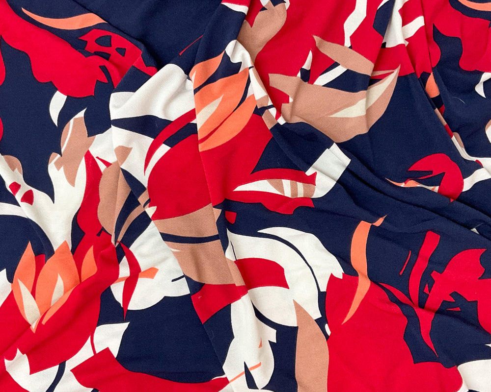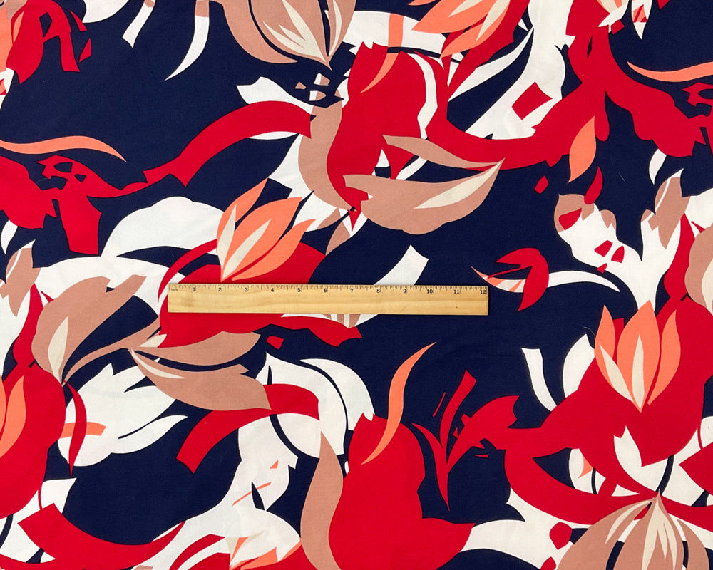 -Blue-Red-Multi Poly Stretch Spandex Floral Printed Jersey Knit Fabric
