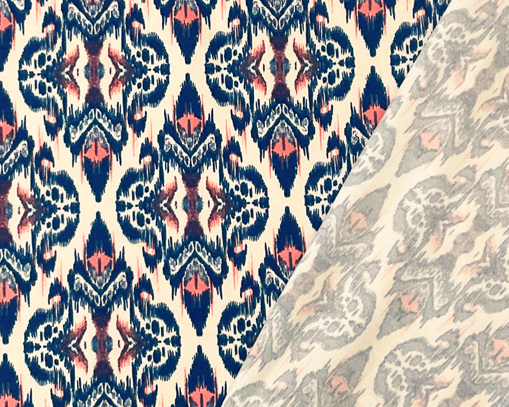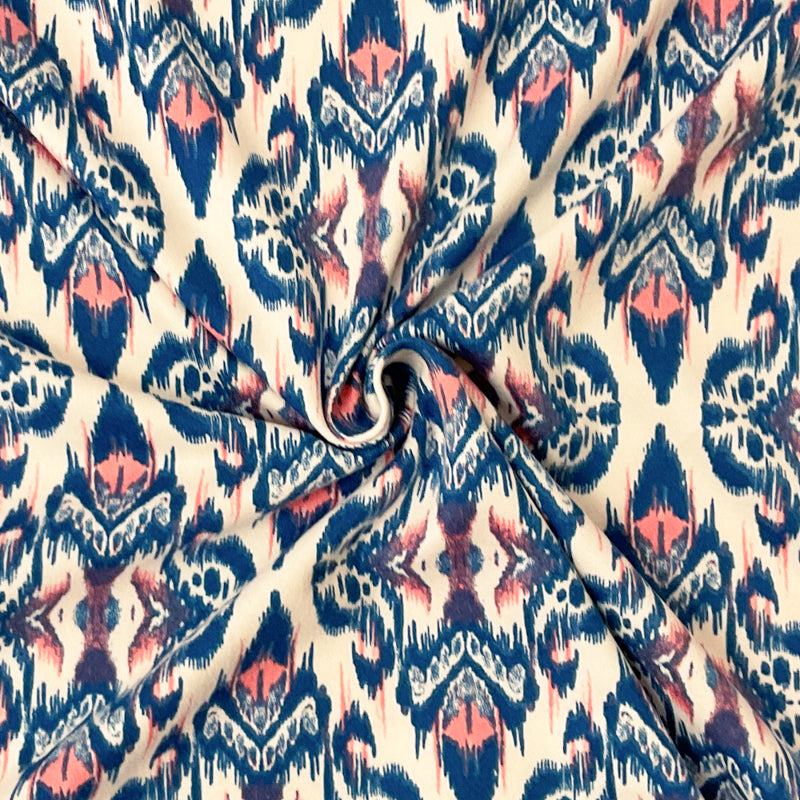 -Poly Spandex Stretch Ikat-Like Pattern Print Double Brush Jersey Knit Fabric