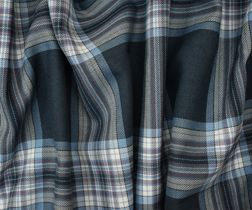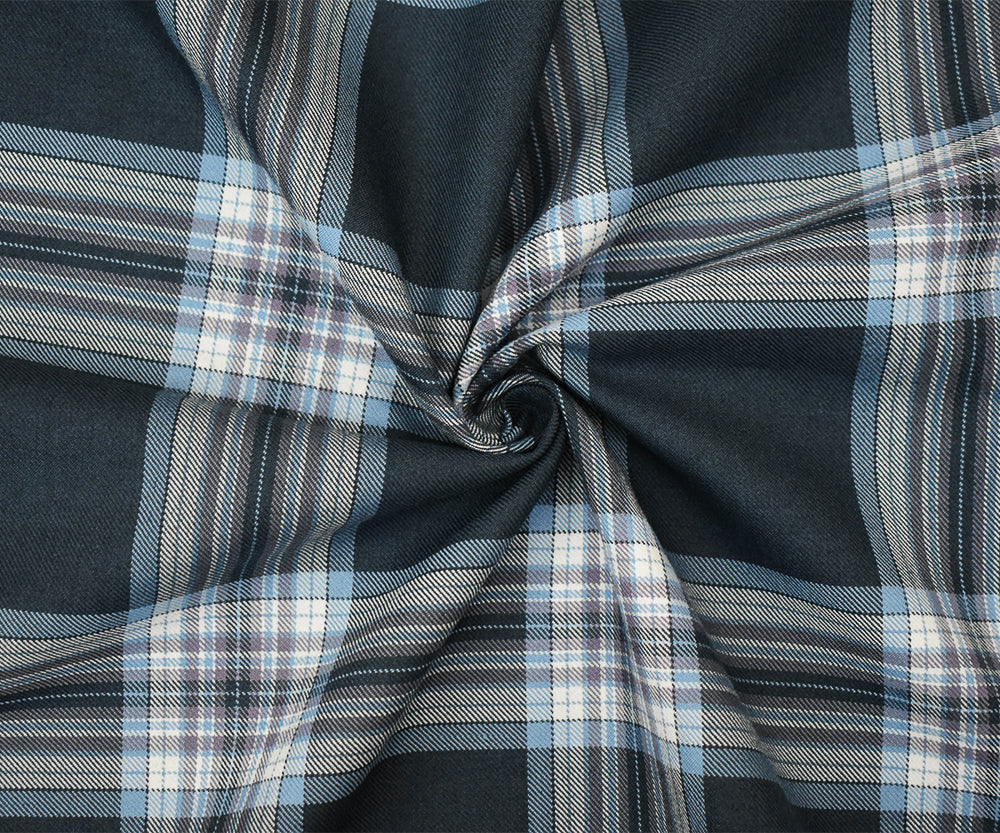 -Polyester and wool blend plaid/check pattern twill suiting fabric. Made in Japan.