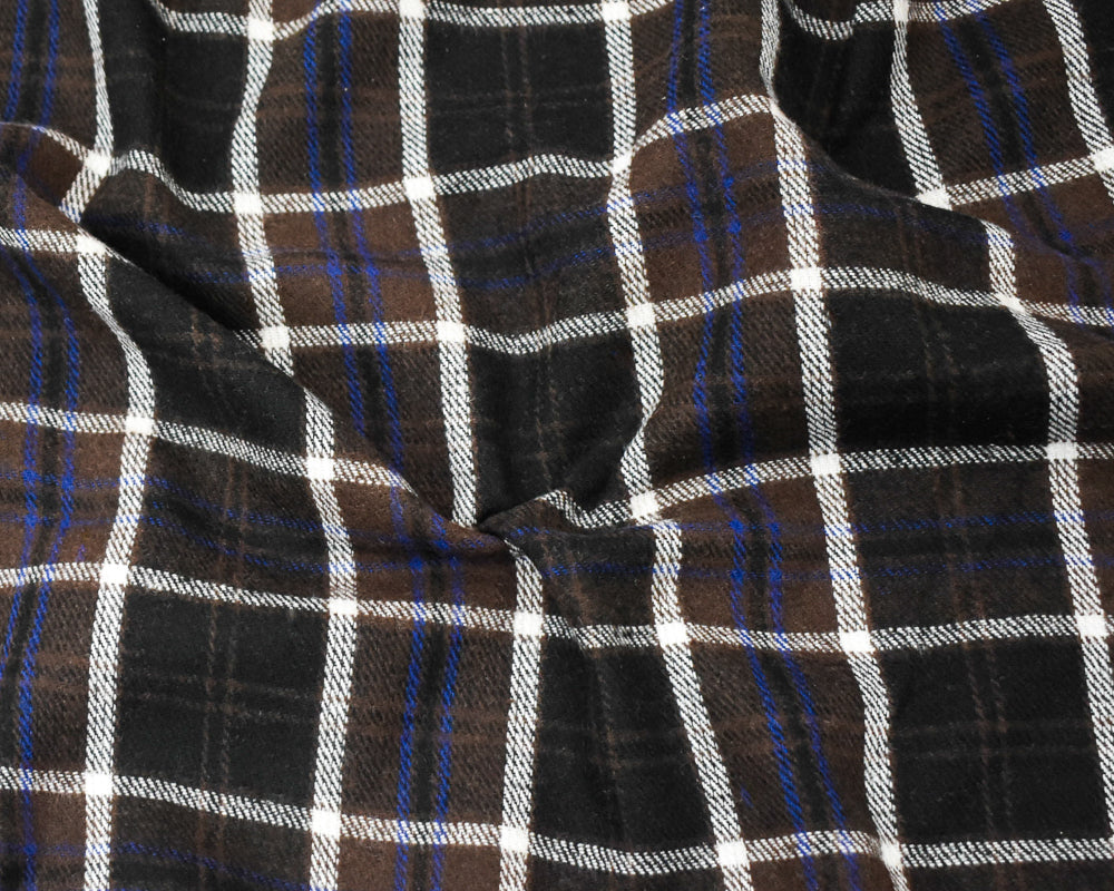 Brown-Bue-Multi Melton Poly-Wool Plaid Twill Woven Jacketing Fabric