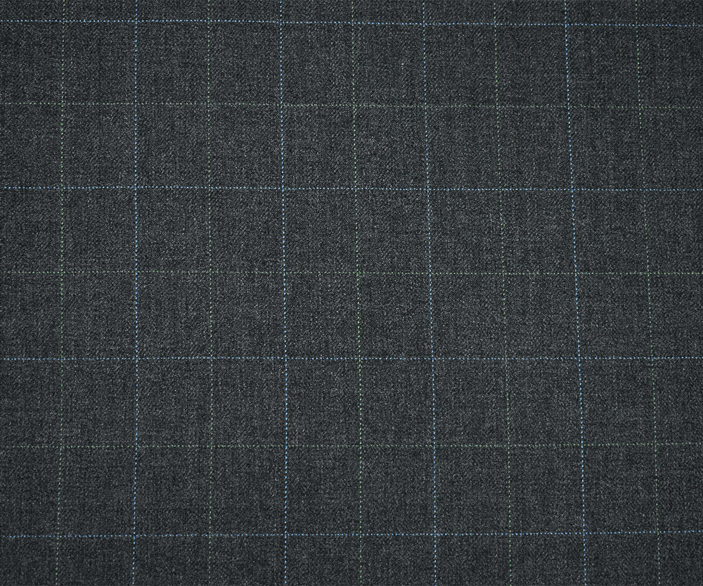 Gray-Blue-Green Poly Wool Check Herringbone Suiting Woven Fabric